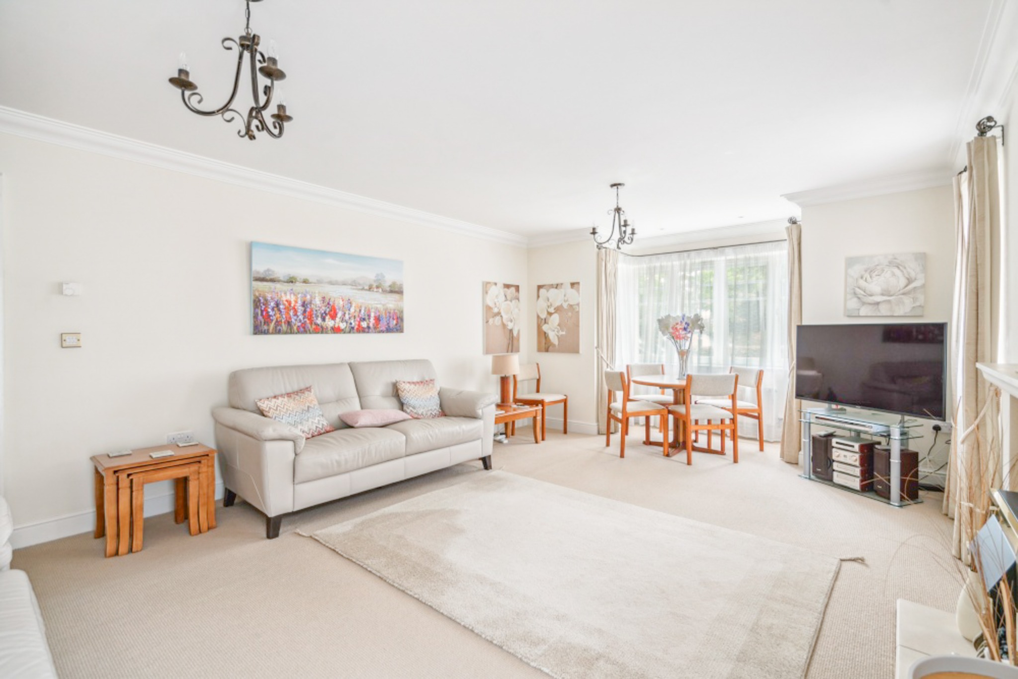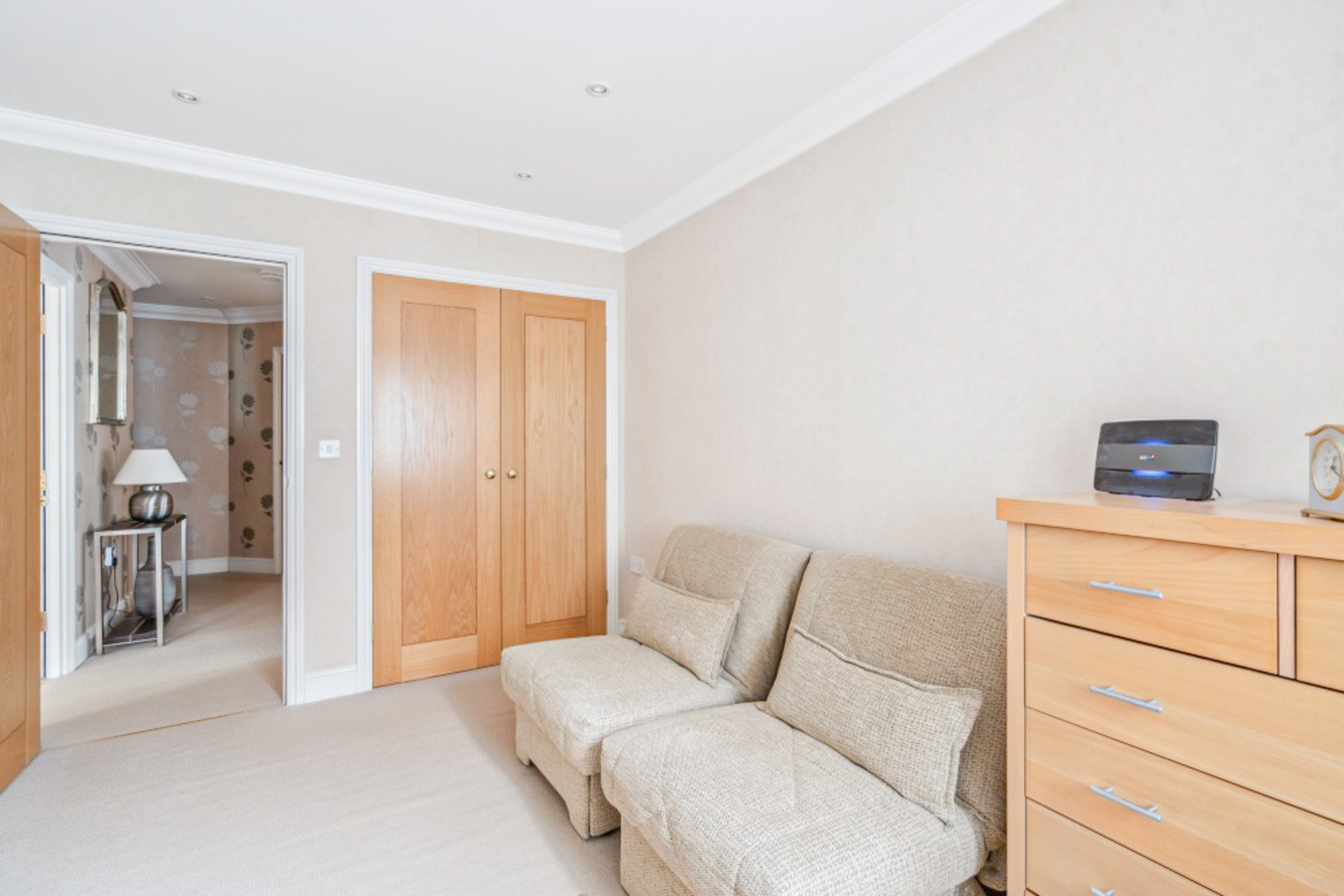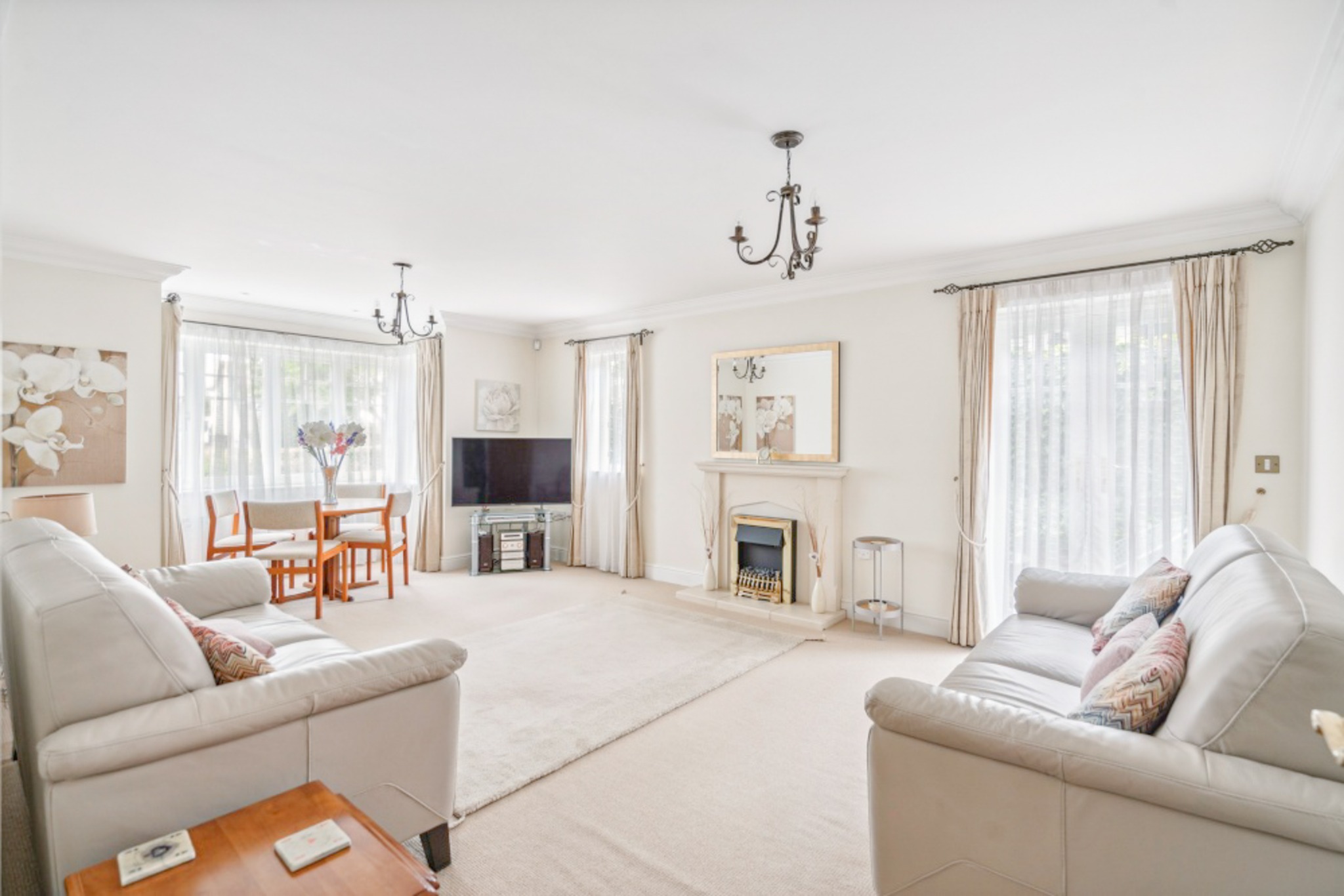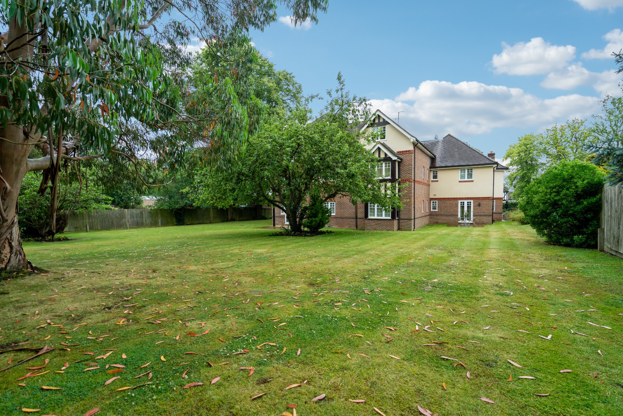 The apartment comprises a generous lounge/diner that is full of natural light, with the added benefit of access to a patio area. There is a well-equipped kitchen/breakfast room offering plenty of storage space, with integrated appliances and double doors opening out to the front lawn. The master bedroom sits to the rear of the apartment, with a spacious en-suite, fitted wardrobes, and direct access to a second patio area. A further double bedroom, also with fitted wardrobes, and a three-piece family bathroom complete the apartment.