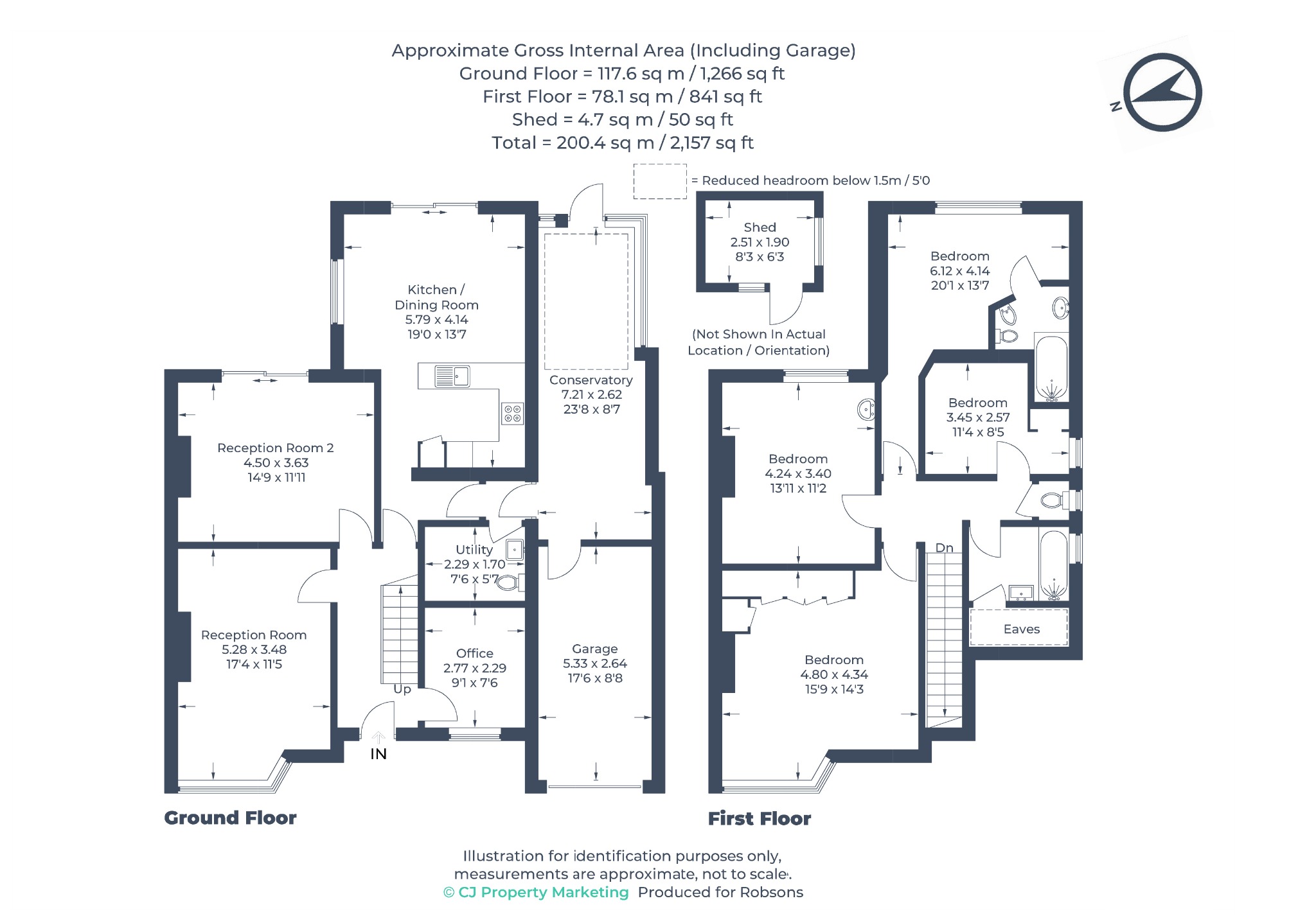 The ground floor comprises an entrance hallway, two reception rooms with one benefitting from access to the garden, a generous kitchen/diner (also with access to the garden), and a study. Completing the ground floor is a utility room with a wash basin and WC, and a conservatory with access to the garage, ideal for additional storage space. Four bedrooms are located on the first floor, along with two bathrooms (one en-suite) and a separate WC.