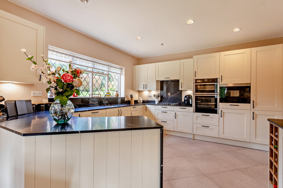 A beautiful, well-equipped kitchen/diner with doors leading to the Patio for outside entertaining. The kitchen offers a variety of fitted units providing plenty of storage space, Neff integrated appliances, including a fridge freezer, dishwasher, double oven, gas hob, microwave and 4 in 1 tap. Off the kitchen is a separate utility room with Vaillant Eco boiler and an additional guest cloakroom.