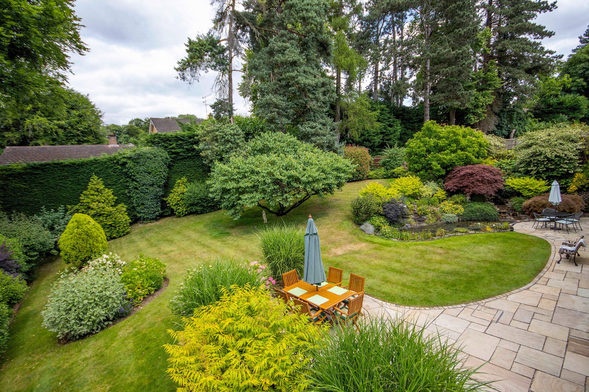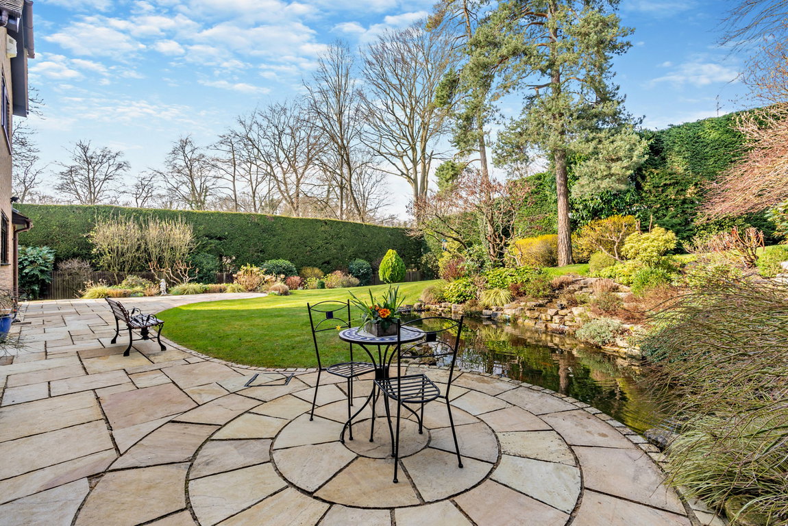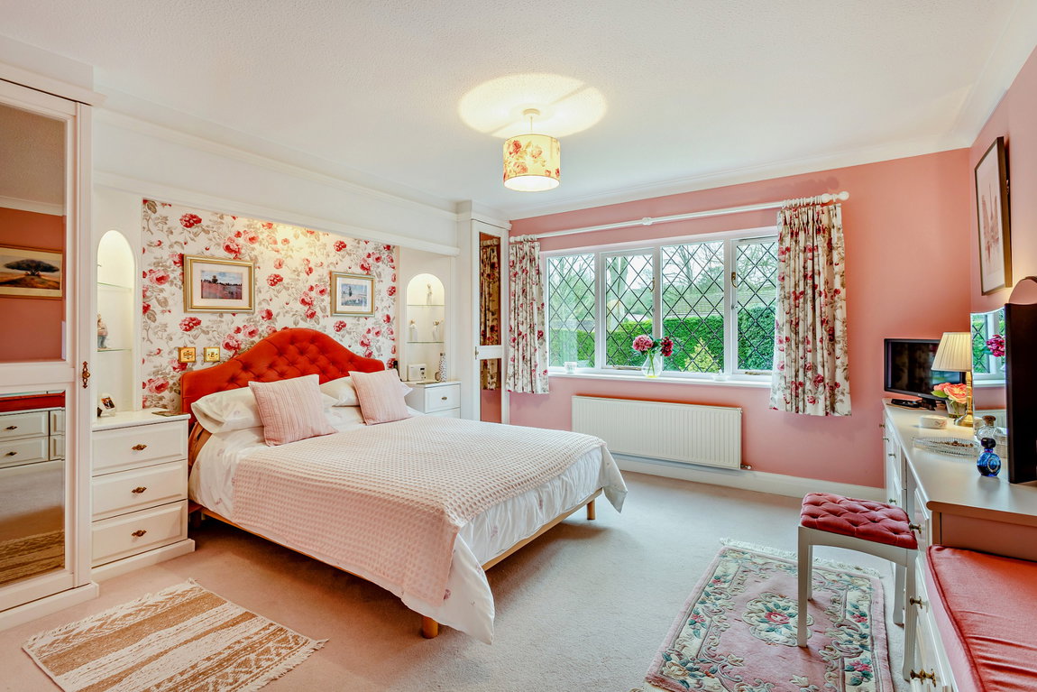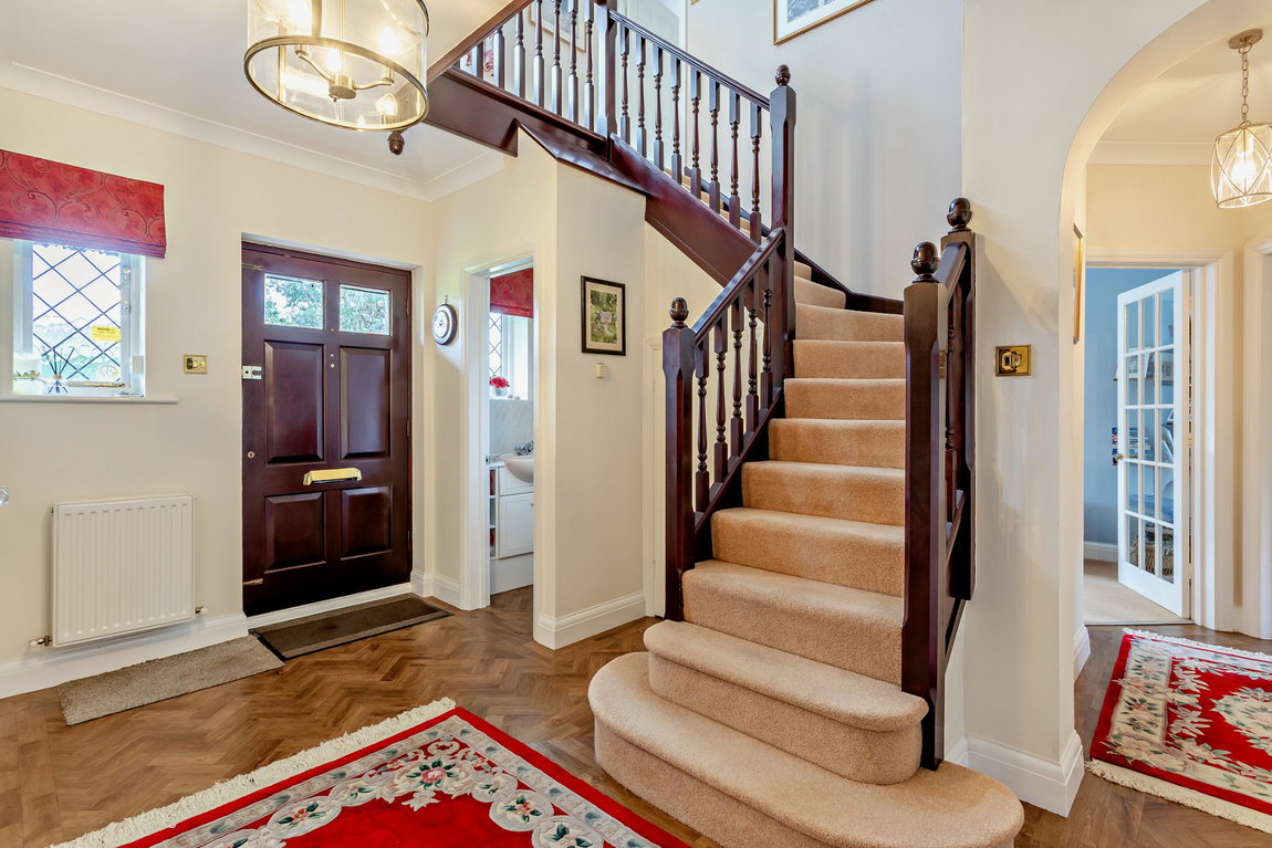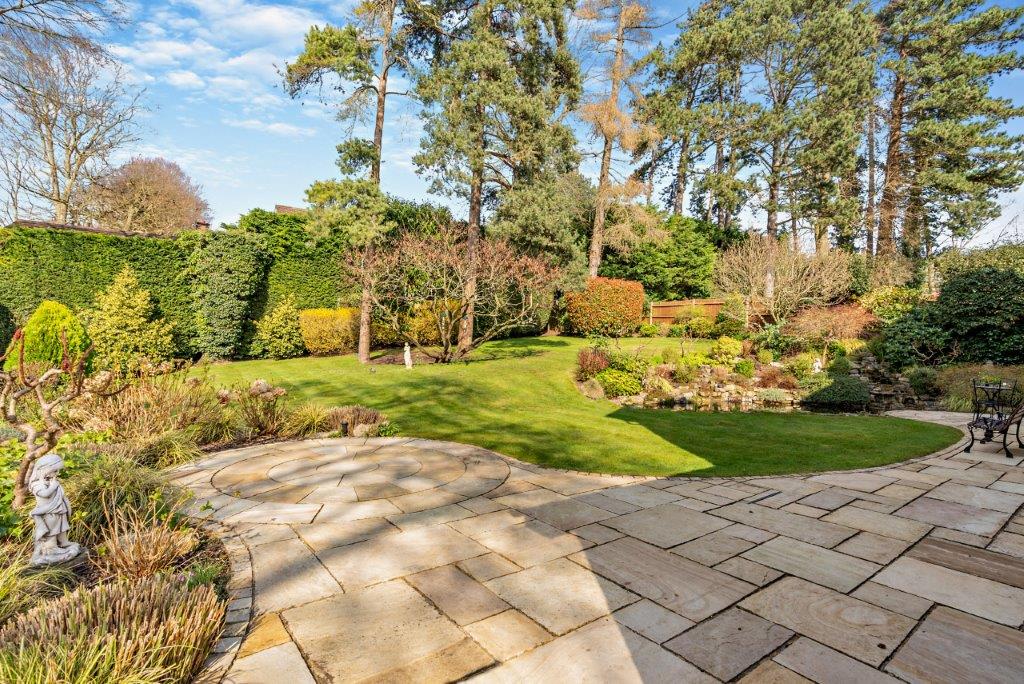To the first floor is a light and spacious landing leading to the family bathroom and five bedrooms, two with en-suites. The landing also allows access to the large loft area via a pull down loft ladder. Externally, there is a private and secluded rear garden laid to lawn with shrubs, hedge and flowerbed borders; an easy to maintain pond with two waterfalls and a large patio area with sandstone paving. To the front is a carriage driveway with off-street parking for several cars; a separate double garage and beautiful wrap-around gardens.