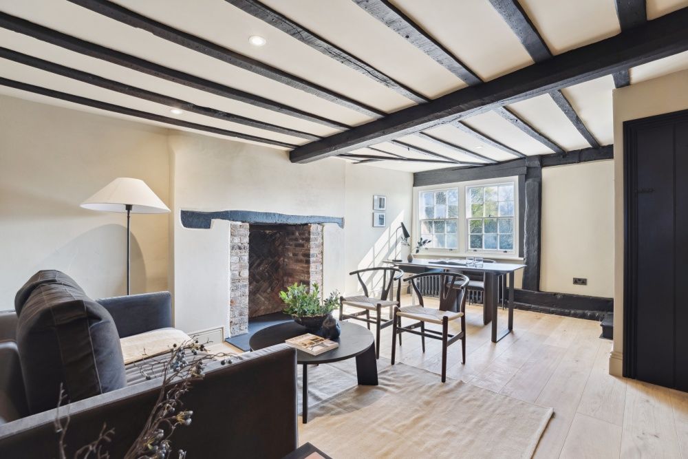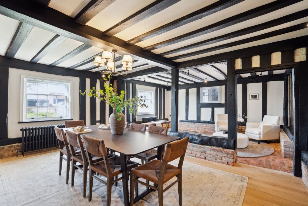 Approached via a sweeping driveway and surrounded by beautifully maintained grounds, the property immediately impresses with its timeless façade and idyllic rural setting. Internally, the home has been sympathetically restored and impeccably styled, marrying original period features, such as exposed oak beams, characterful fireplaces and historic detailing, with refined contemporary finishes.