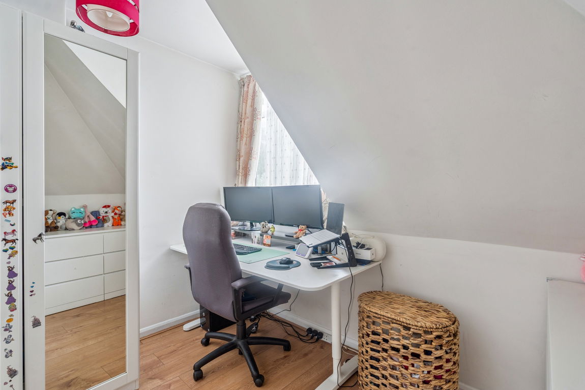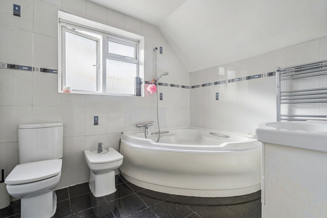Upstairs, there are three well-proportioned bedrooms, two generous doubles with fitted wardrobes, and a spacious single featuring a walk-in store/study area, currently used as a peaceful prayer room. A large, modern family bathroom completes the first floor, finished to a high specification with stylish fixtures and fittings.