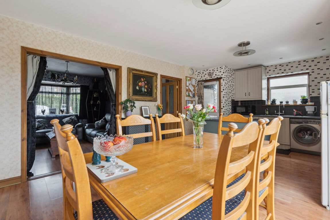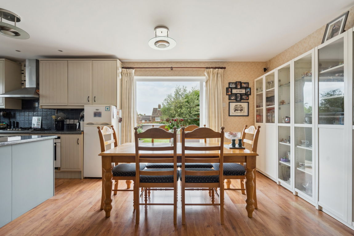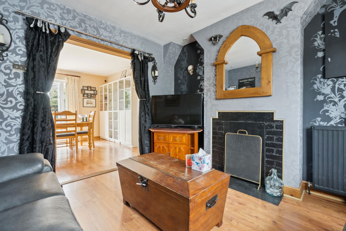 Off the kitchen/dining room is the front-aspect living room with a bay window.