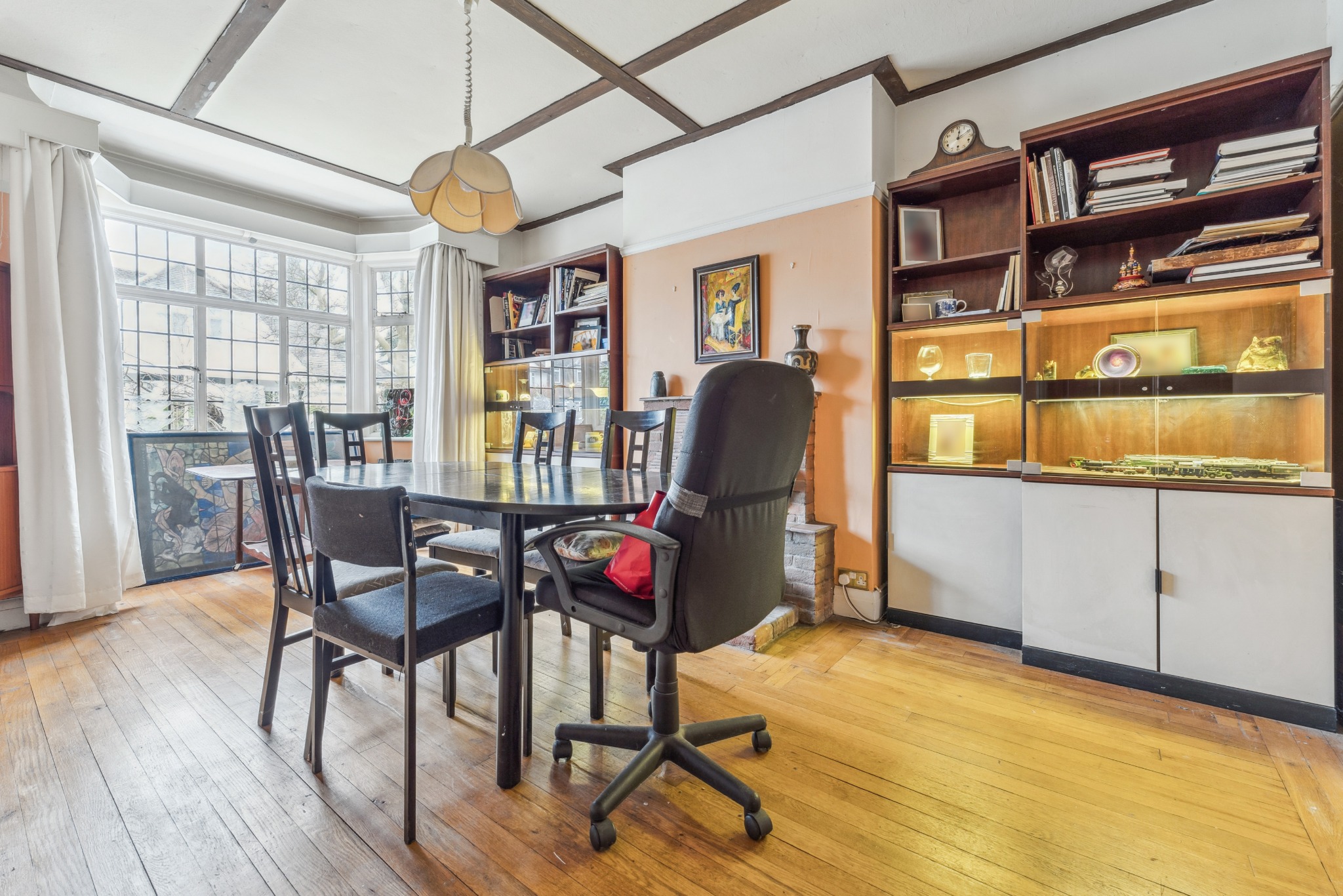 The property comprises an entrance porch and hallway leading to a guest cloakroom. There is a front-aspect dining room with a bay window and a living room with a feature brick surround fireplace and a French door opening out to the garden. The kitchen features a range of white, modern units and integrated appliances, access to a utility room and a 'lean-to'.