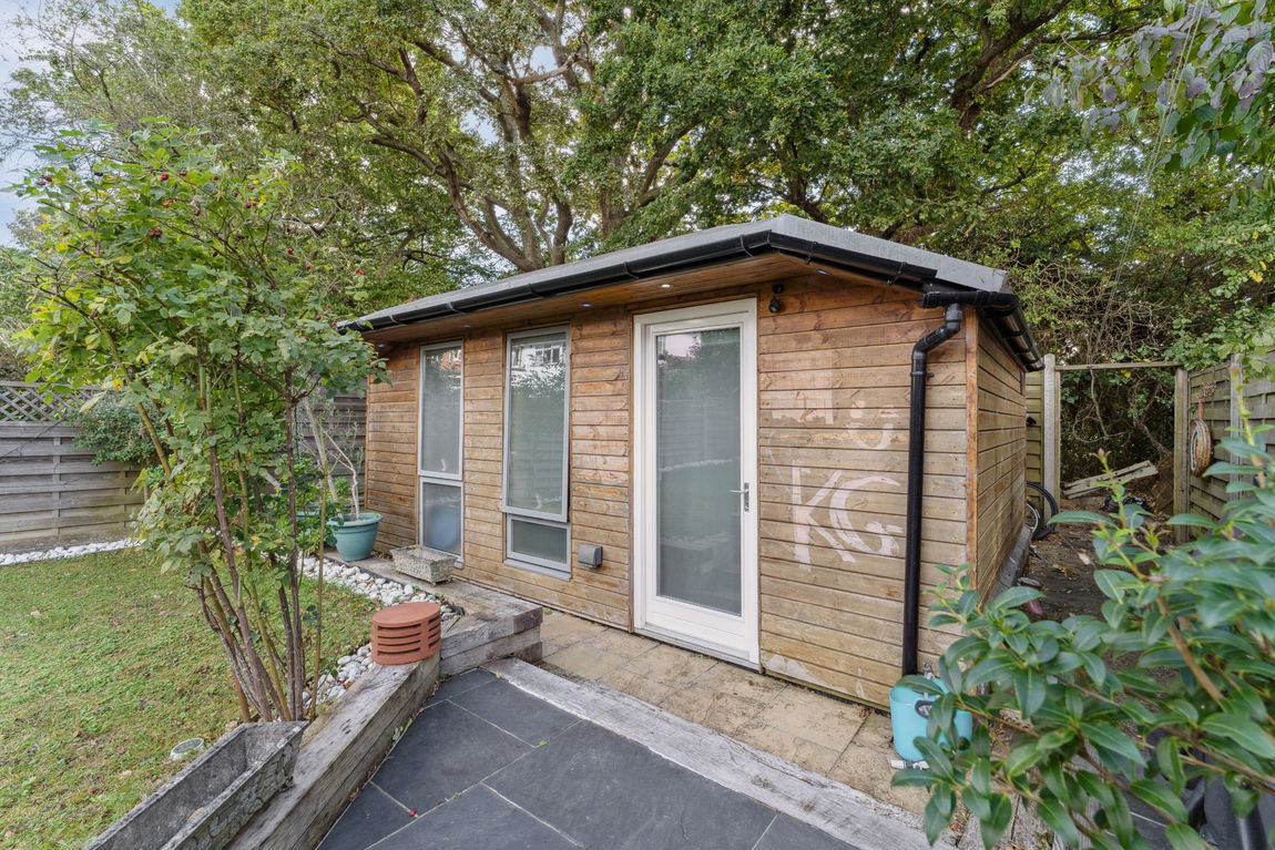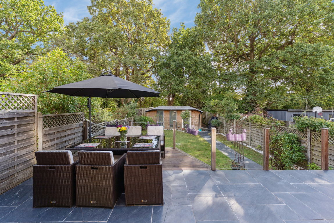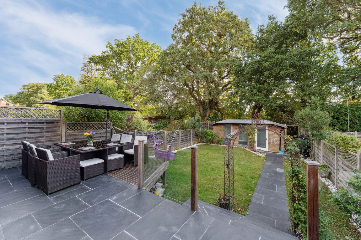 The garden is well-maintained with a generous terrace, ideal for outdoor dining, with a manicured lawn and an outbuilding. Off-street parking is available at the front of the property via your own driveway, with the added benefit of an EV charging point.