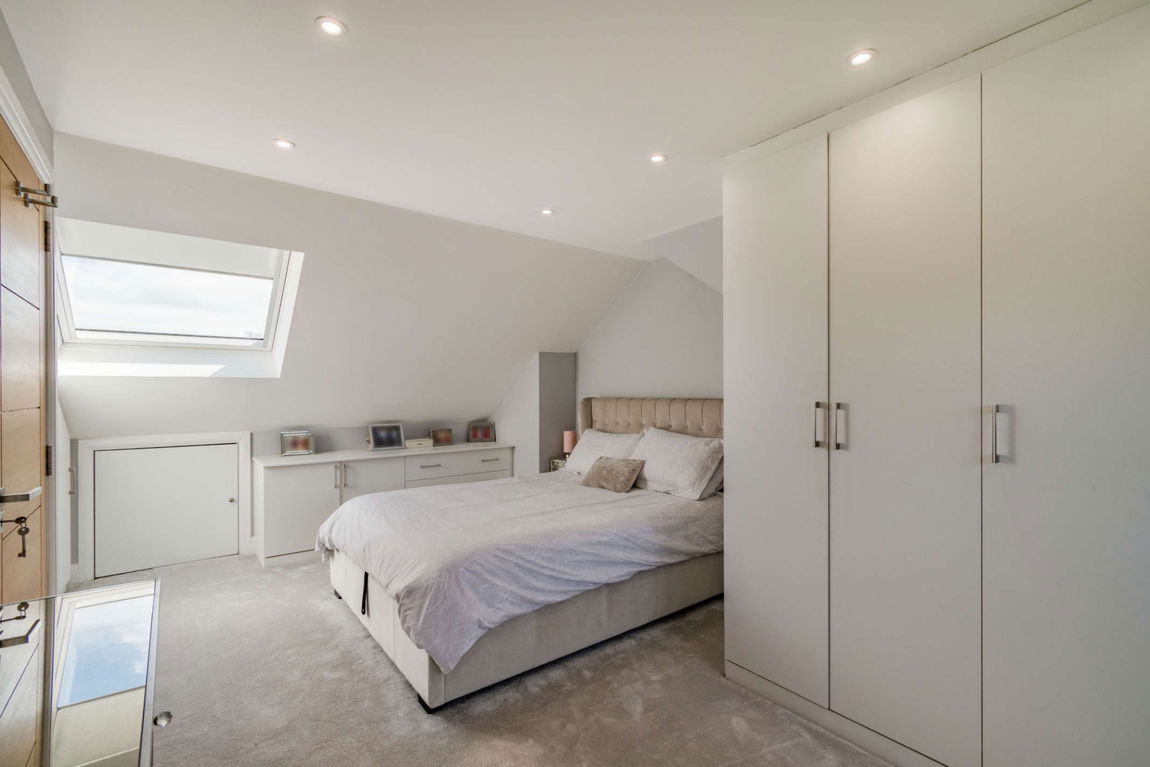 The ground floor comprises a welcoming entrance hallway with a guest cloakroom, a generous front aspect lounge, a useful utility room, and a large, light-filled kitchen/dining/sitting room. The kitchen offers a range of bespoke fitted units with integrated appliances, and a sizeable kitchen island providing additional worktop / storage space and a wine cooler. There is plenty of space for a dining table & chairs, as well as a sitting area. Completing the ground floor is multipurpose room that is currently a play room, but could be utilised as an office or an additional reception room. To the first floor there are two well appointed double bedrooms benefiting from fitted wardrobes, a further bedroom and a luxury four piece family bathroom. The second floor hosts an impressive master bedroom boasting fitted wardrobes, an en-suite shower room, and access to eave storage space.