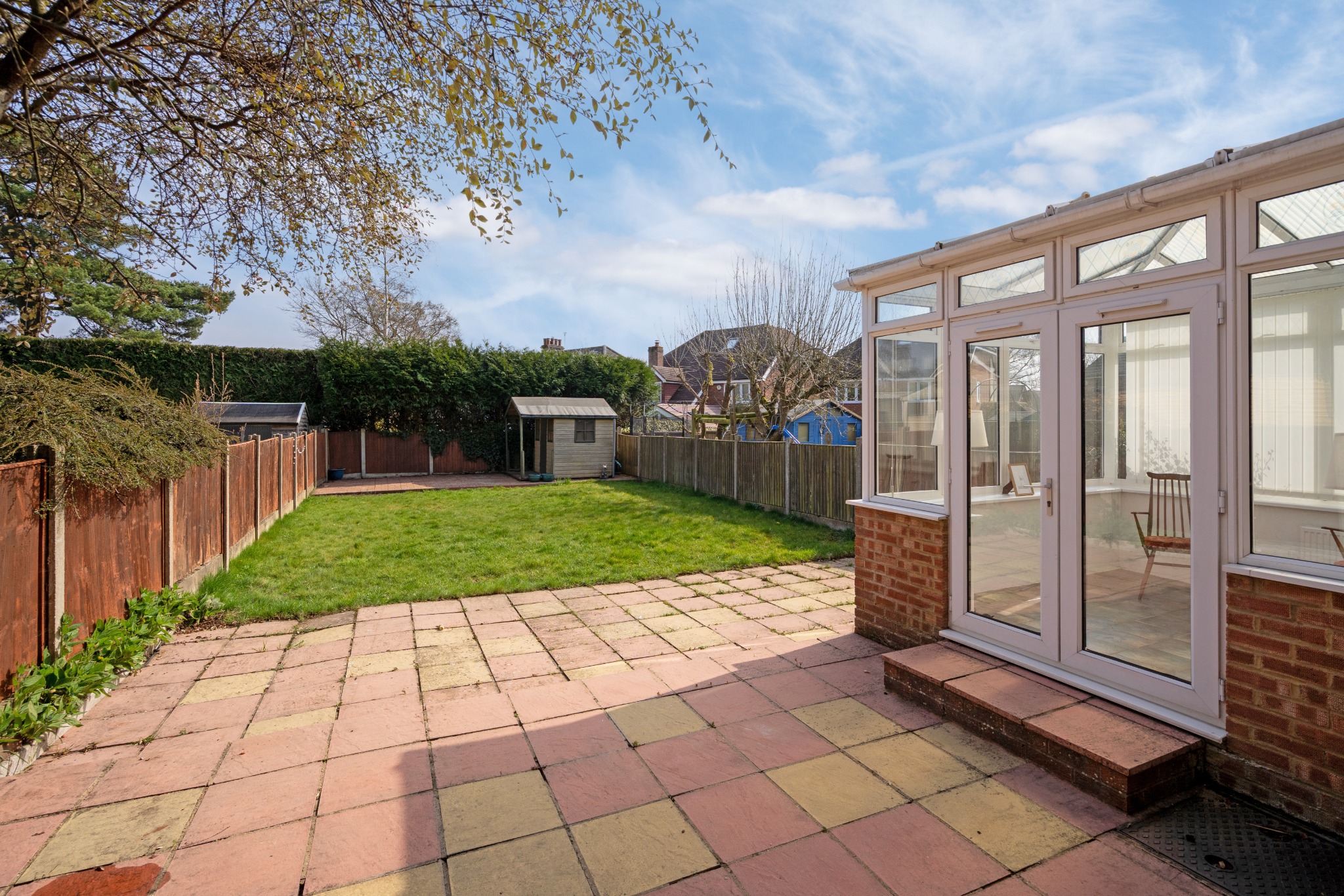 From our Amersham office proceed down Hill Avenue towards Amersham station. At the mini roundabout turn left onto Chiltern Avenue and first right onto King George V Road. Follow the road and take the first right onto Orchard Lane and immediately right again over the humpback bridge. At the mini roundabout turn left onto Highland Road and The Meadows is the first and second turning on the left-hand side. Take the second turning onto The Meadows and 43 can be found on the right-hand side.