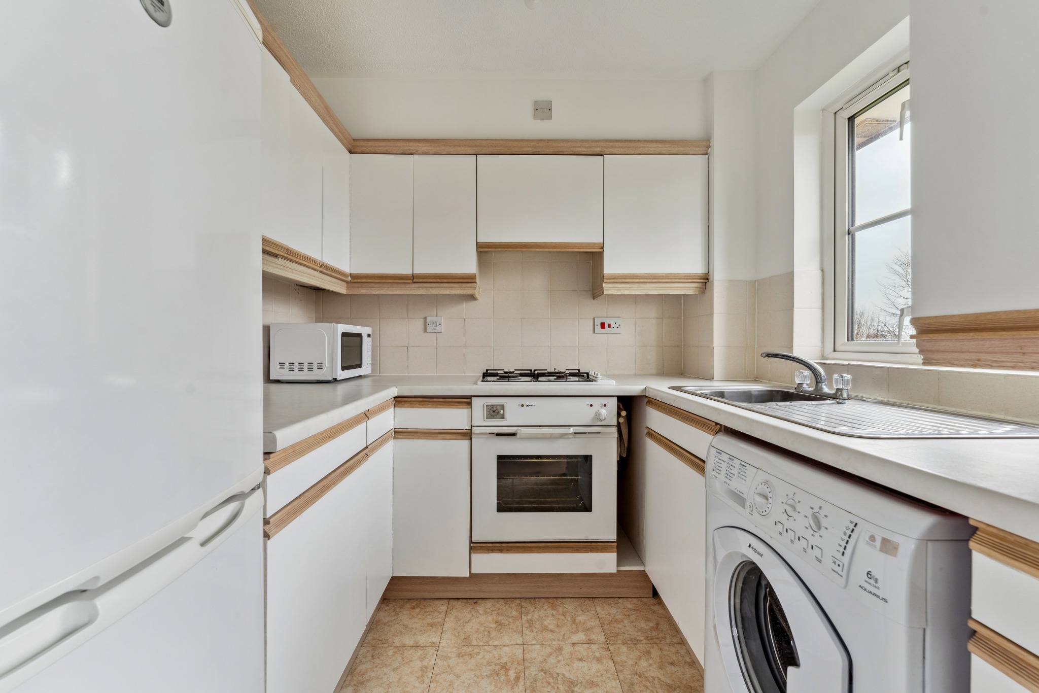The property features a light and spacious dual-aspect sitting room, a well-equipped kitchen with fitted units and space for freestanding appliances, and two bedrooms, one of which benefits from fitted wardrobes. The modern, panelled bathroom has been recently refurbished and includes under-sink storage. The apartment also benefits from a large, partially boarded loft providing additional storage space.