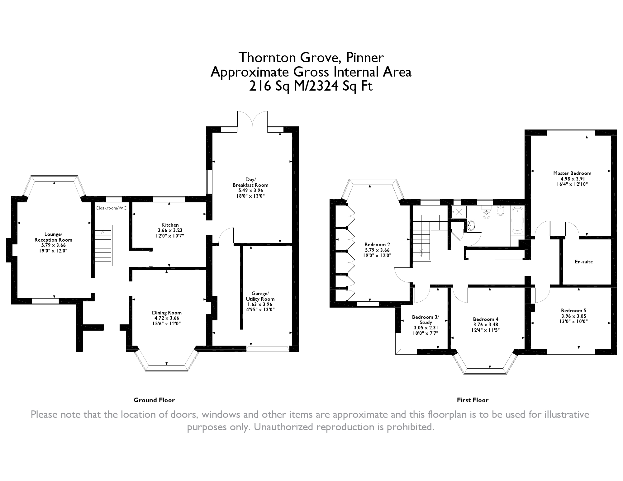 A generously appointed, five bedroom two bathroom, detached home in a sought-after location. The ground floor comprises an entrance hall and guest cloakroom, a lounge with a large bay window, a separate dining room and a kitchen featuring a selection of fitted units and integrated appliances. Completing the ground floor is a second lounge/breakfast room which is accessed via the kitchen and provides direct access to the garden and to the garage/utility room. To the first floor there is a master bedroom with an en-suite, three large double bedrooms, a further bedroom/home office and a family bathroom.