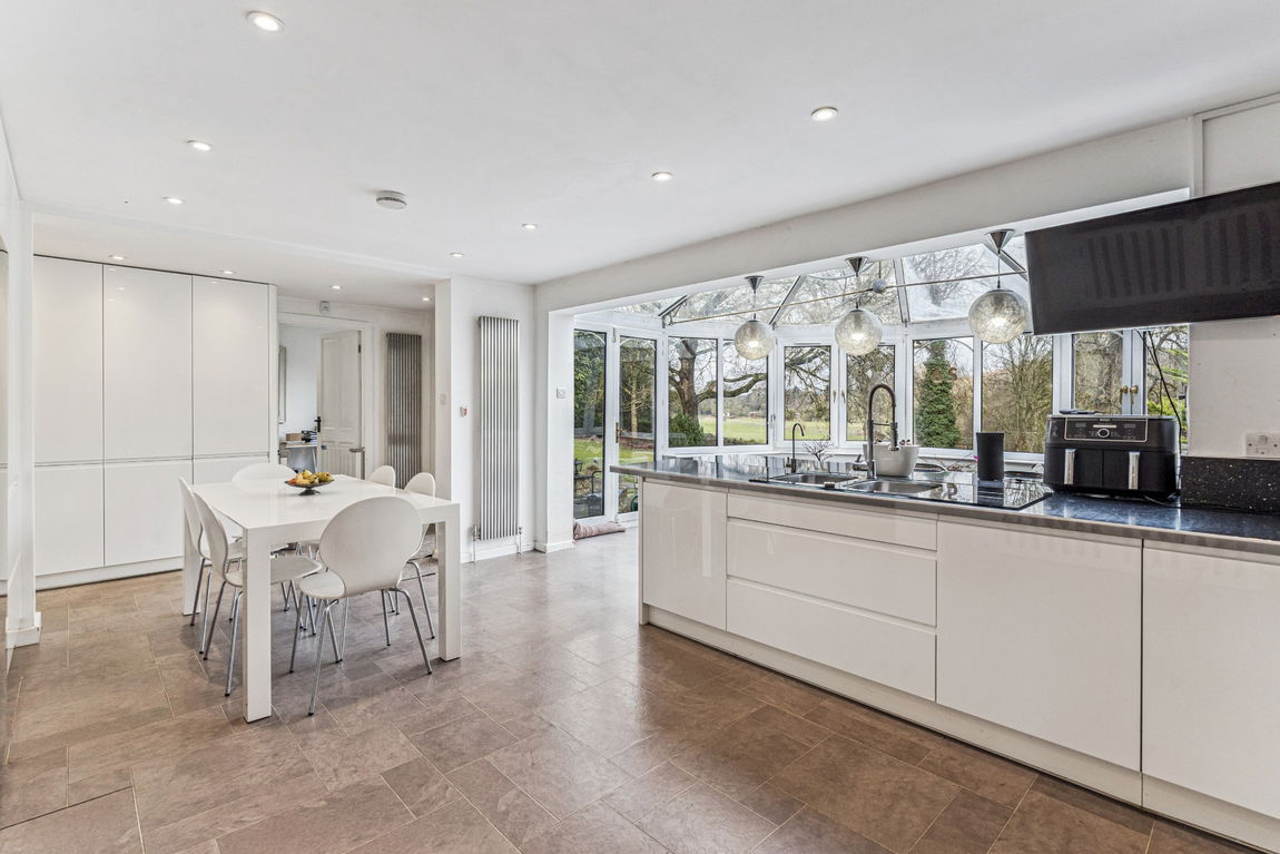The property is entered via a spacious and welcoming hallway with a guest cloakroom. To the front, a generous living room enjoys a garden outlook and features French doors opening onto the rear garden, creating a wonderful connection between indoor and outdoor space. Leading from the living room is a dedicated home office, ideal for remote working.