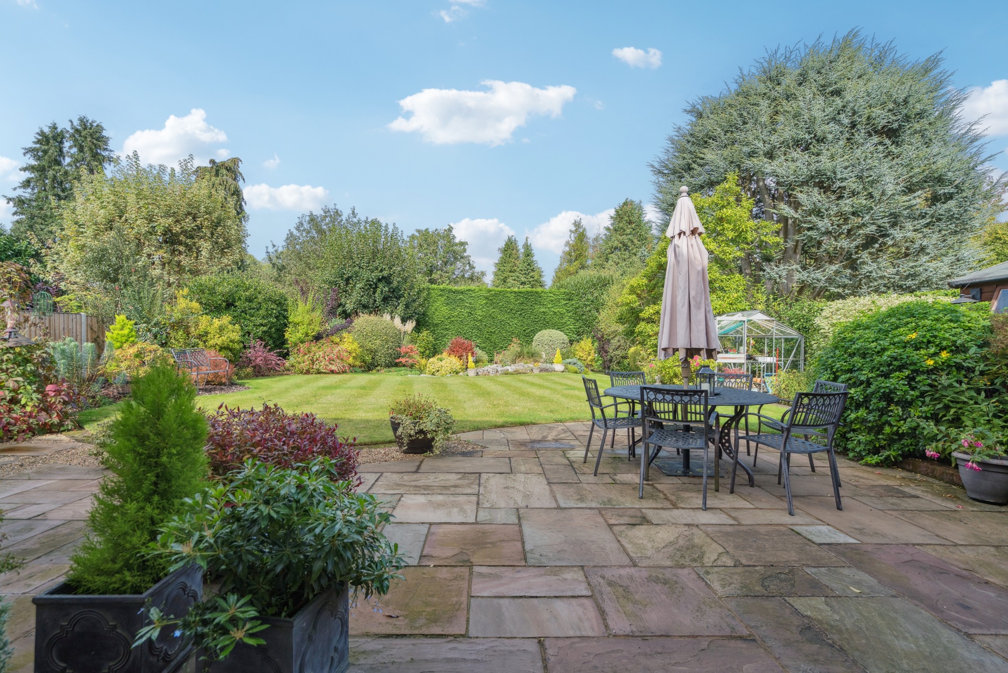 Externally, this fantastic home boasts a beautifully presented rear garden laid to lawn bordered by established shrubs and hedges, a large patio area to enjoy outside dining, a pond and a greenhouse.