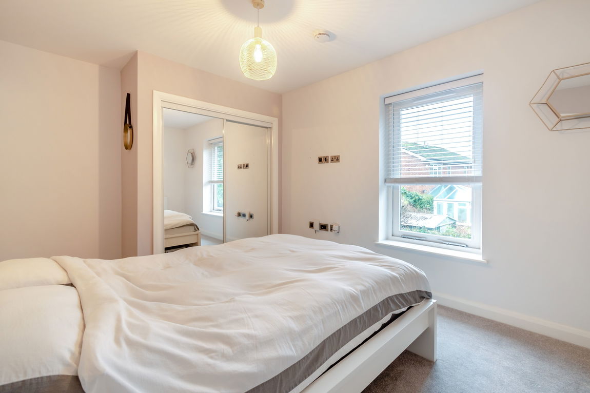The property comprises a welcoming entrance hallway leading to the principal bedroom featuring a stylish en-suite shower room, a second bedroom boasting fitted wardrobes and a well-appointed family bathroom.