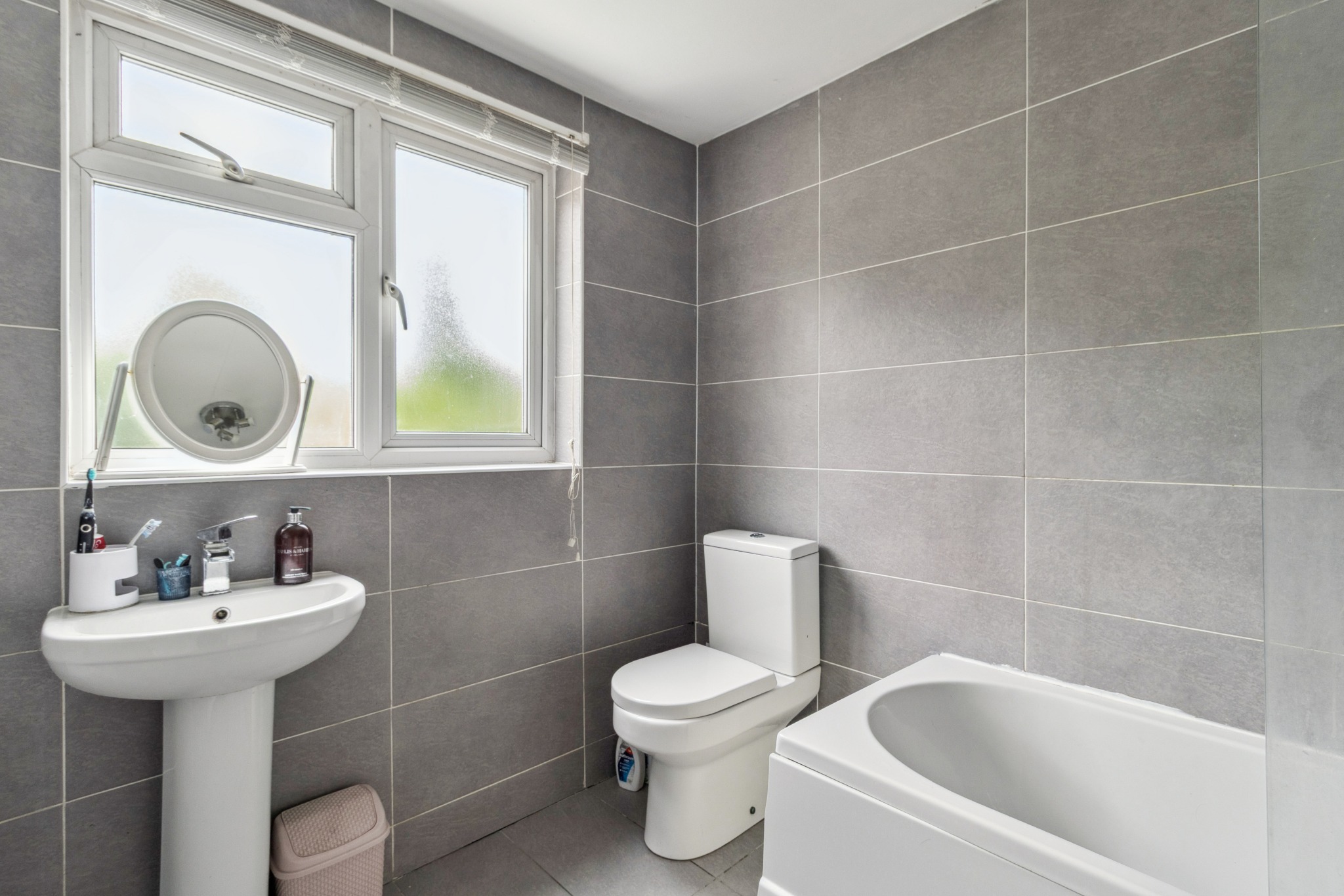Upstairs, the home offers three generously sized double bedrooms, one of which benefits from fitted wardrobes, as well as a fully tiled family bathroom with a useful built-in storage cupboard.