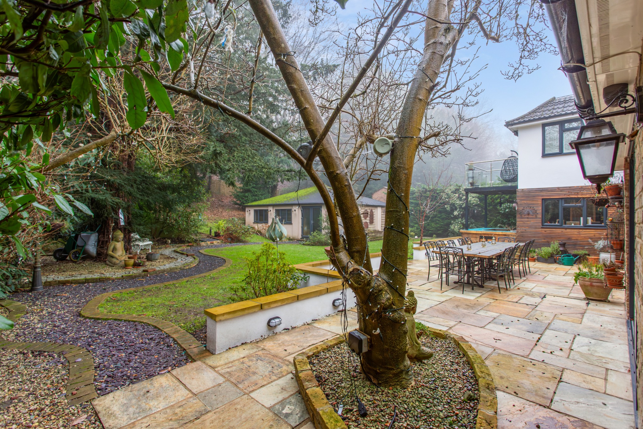 Externally, the property continues to impress. The private rear garden is beautifully landscaped, laid mainly to lawn and framed by mature shrubs and trees that provide excellent privacy. A large terrace offers the perfect space for outdoor dining and entertaining, while the gym and studio add versatility and lifestyle appeal. A useful store room completes the outside space.