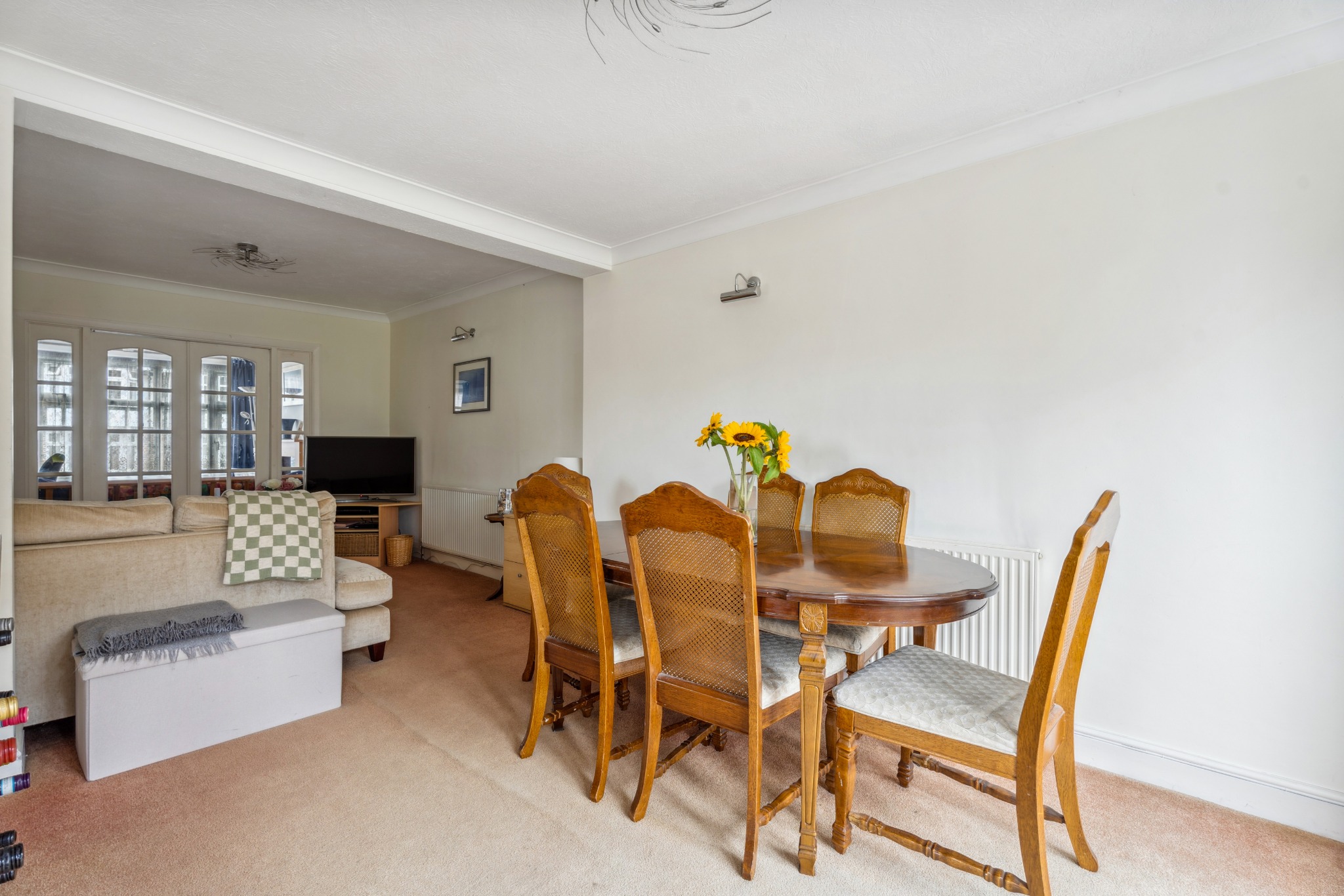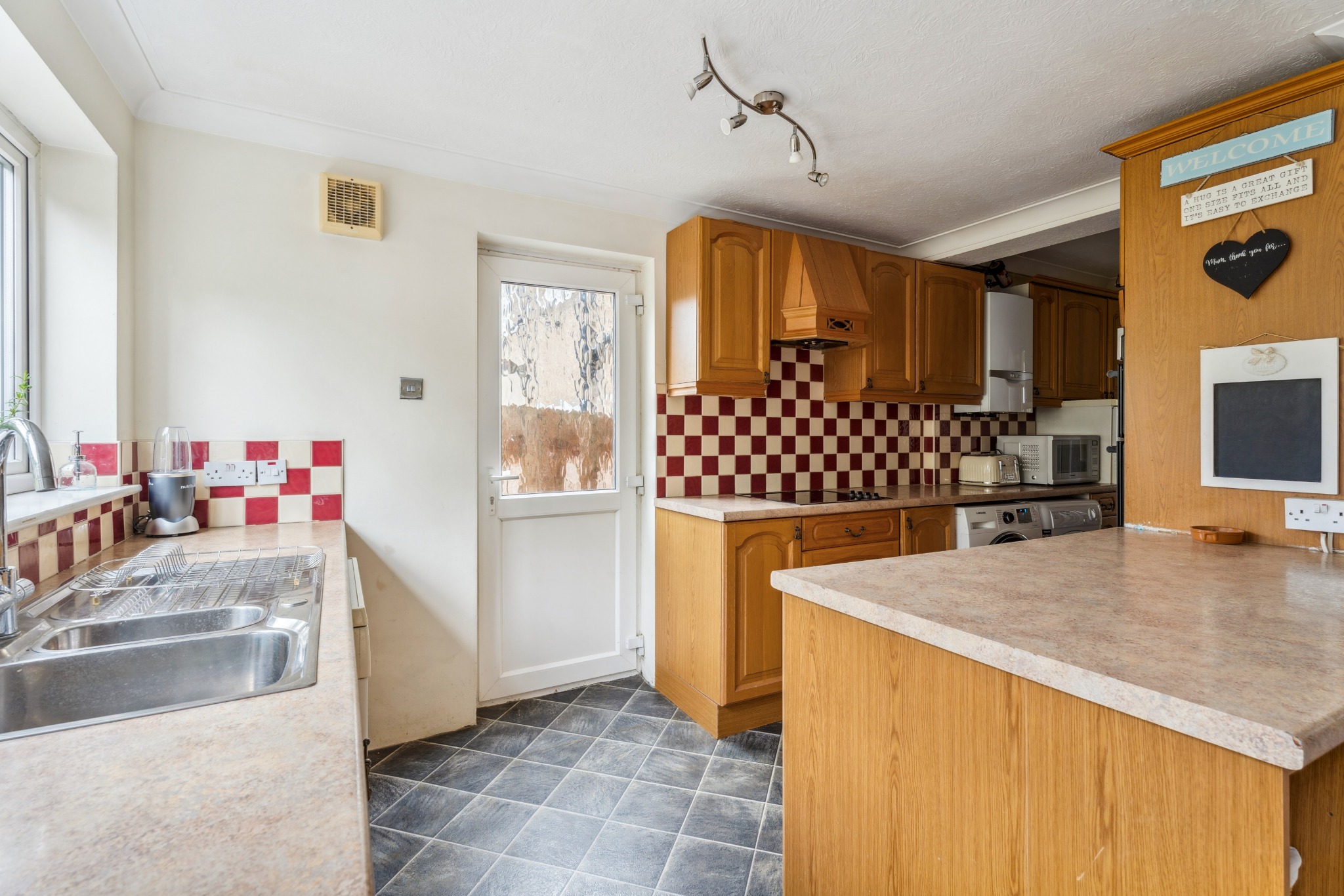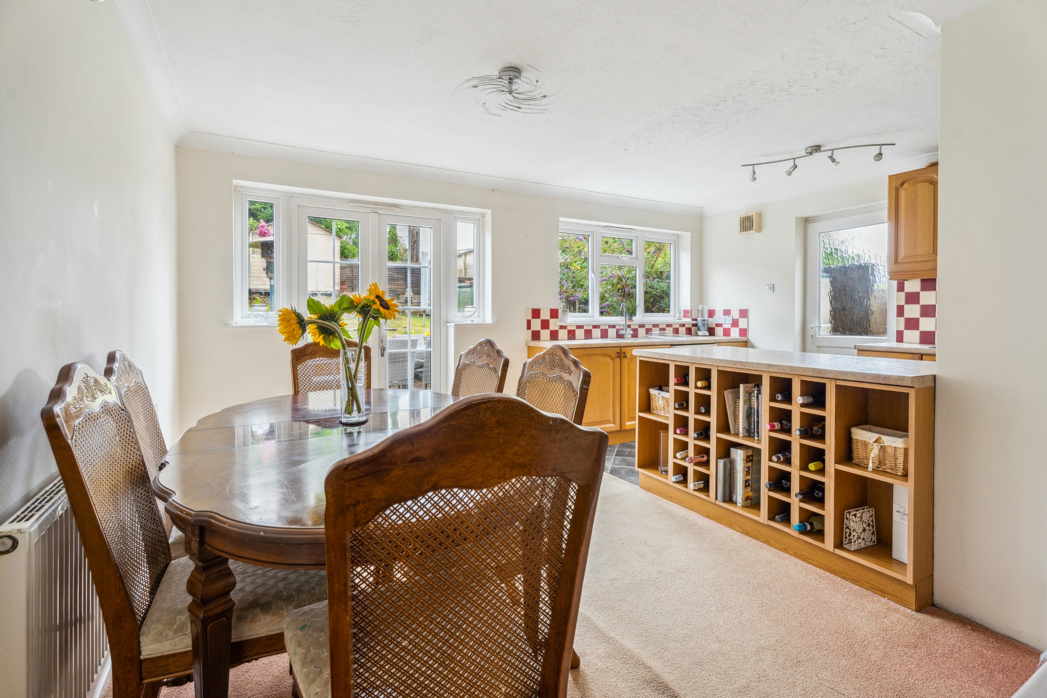 The well-appointed kitchen / diner features a range of fitted units providing ample storage space with room for freestanding appliances, and French doors opening out to the garden.