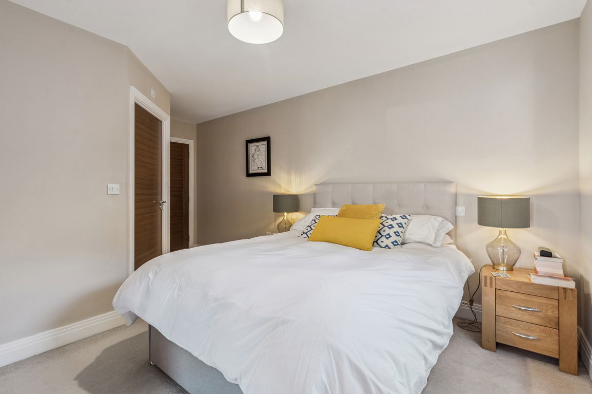 The principal bedroom benefits from a walk-in wardrobe and a modern en-suite shower room. There is a second double bedroom and a luxury family bathroom featuring stylish fittings and under-sink storage.