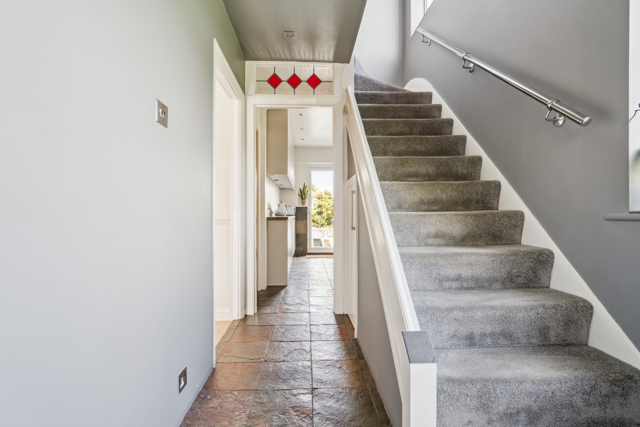 To the first floor are two double bedrooms, one smaller bedroom and a family bathroom.