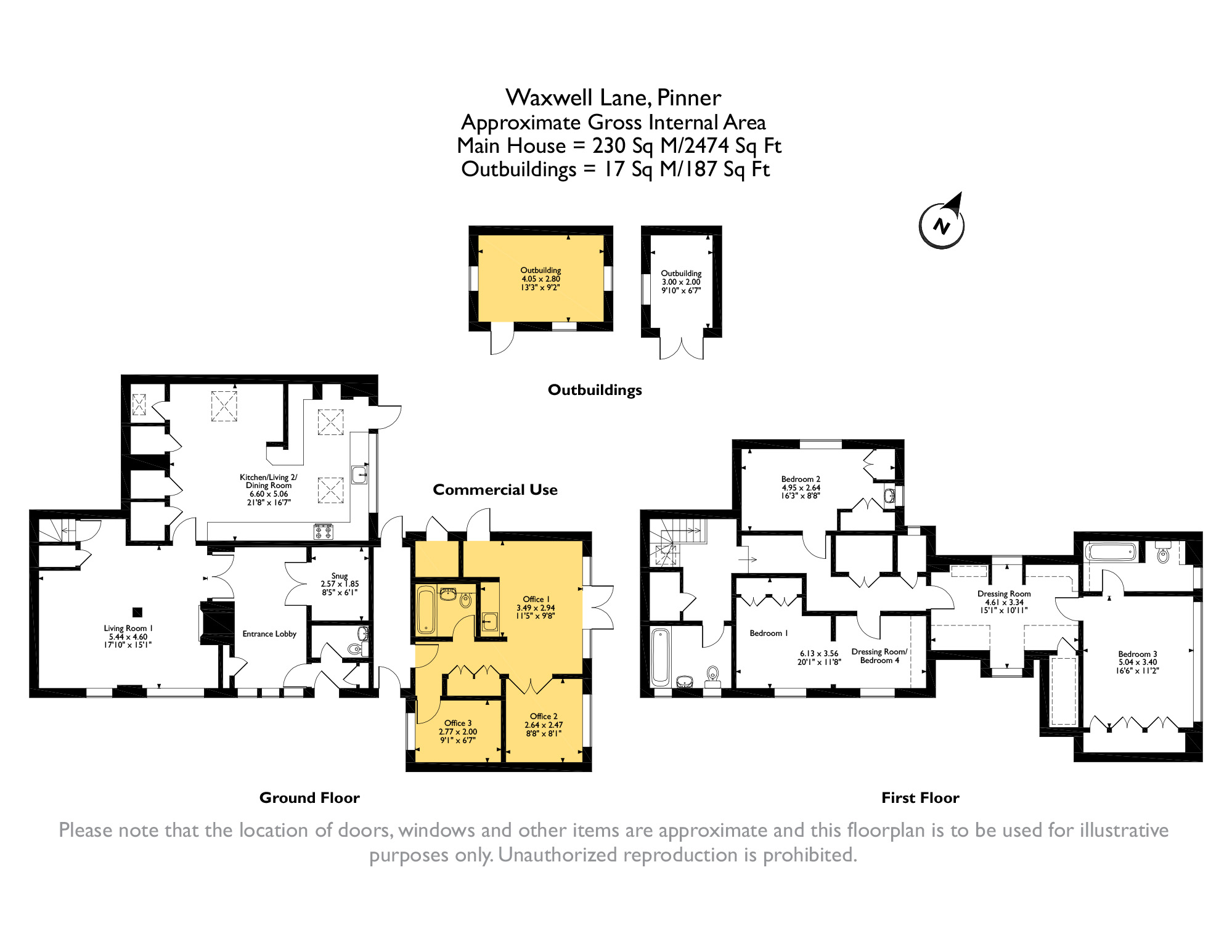 The ground floor of the main house comprises an entrance porch with a guest cloakroom, a grand entrance lobby with access to a snug which can alternatively be used as a study area. There is also a beautiful lounge with a feature fireplace and access to the first floor. Following on from the lounge is an impressive kitchen/dining/living room featuring a range of bespoke fitted units with integrated appliances, ample storage space and a sitting/dining area. The kitchen also provides access to the garden. To the first floor there is a light-filled landing with three useful storage cupboards, two double bedrooms benefitting from fitted wardrobes, one of which was originally two bedrooms and can easily converted back to create a fourth bedroom, and a family bathroom. Completing the first floor is a stunning master suite with an en-suite bathroom and a dressing room. The dressing room can also be utilised as a fourth bedroom. Additionally, the property has a separate area for commercial use that has its own entrance and consists of three offices with a kitchenette and a bathroom. There is potential to use this space as an annexe for guests and relatives or to integrate the space into the main house (STPP).