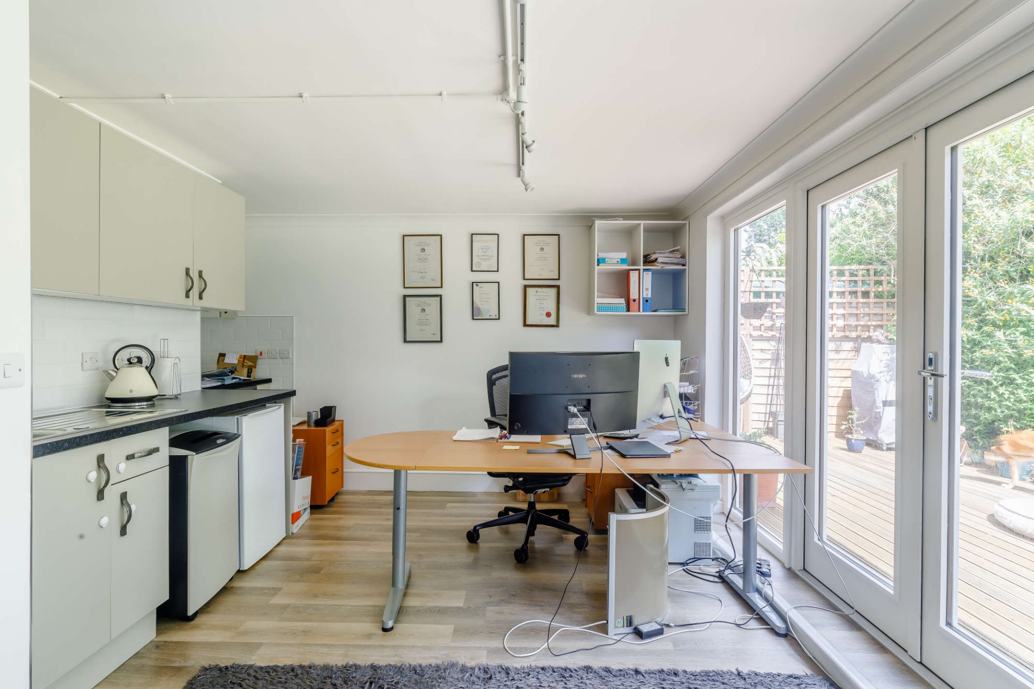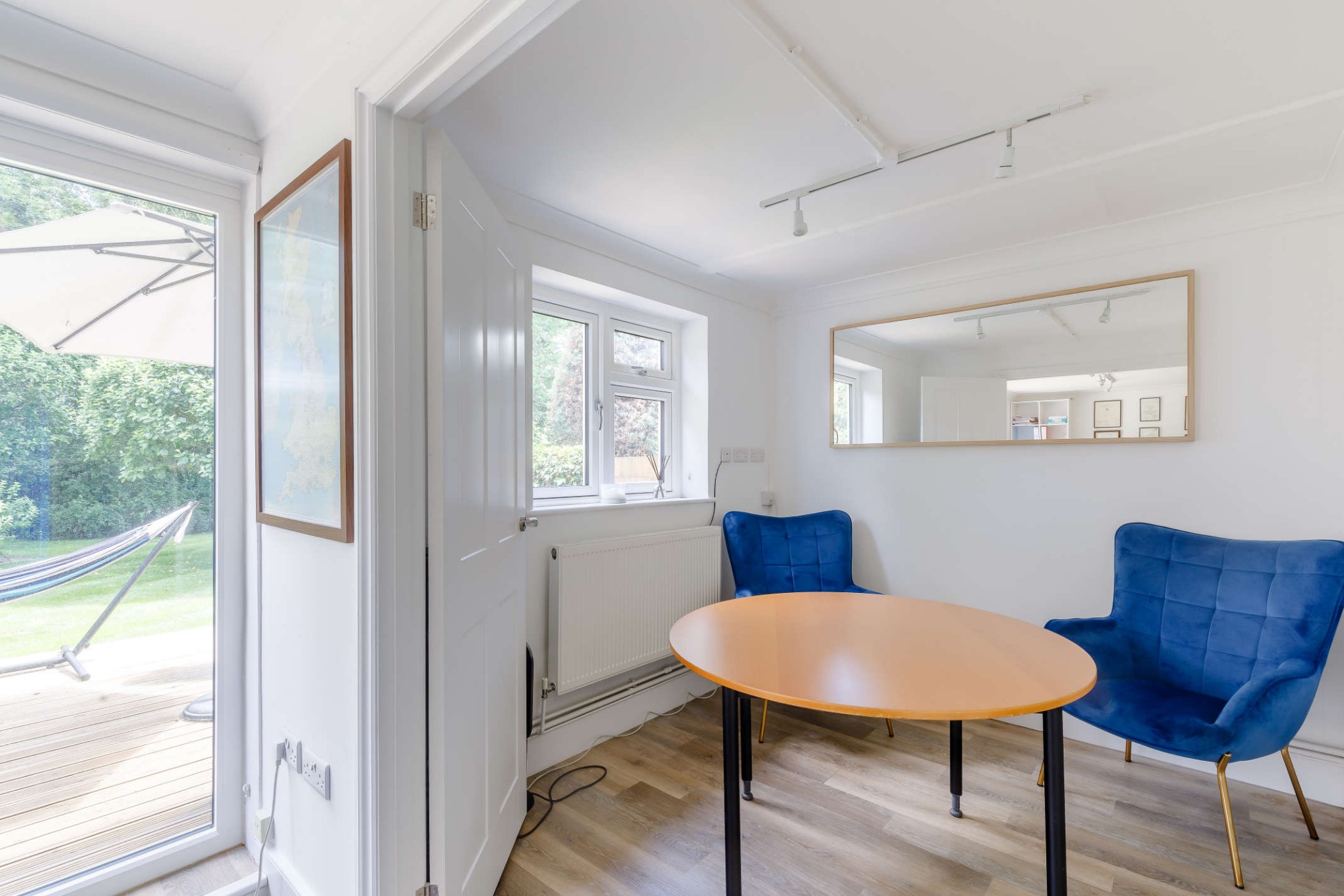 Externally the property boasts a beautifully presented, secluded garden that sits to the right of the home and is accessed via the main house and the commercial unit. The garden is mainly laid to lawn with a decking area perfect for outdoor entertaining. To the front of the property there is a well maintained lawn that is South facing, enjoying the sunshine throughout the day. There is also a driveway providing off-street parking with the added benefit of an electric charging point.