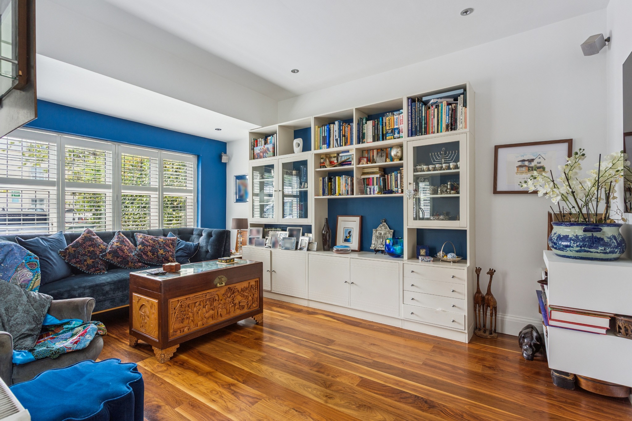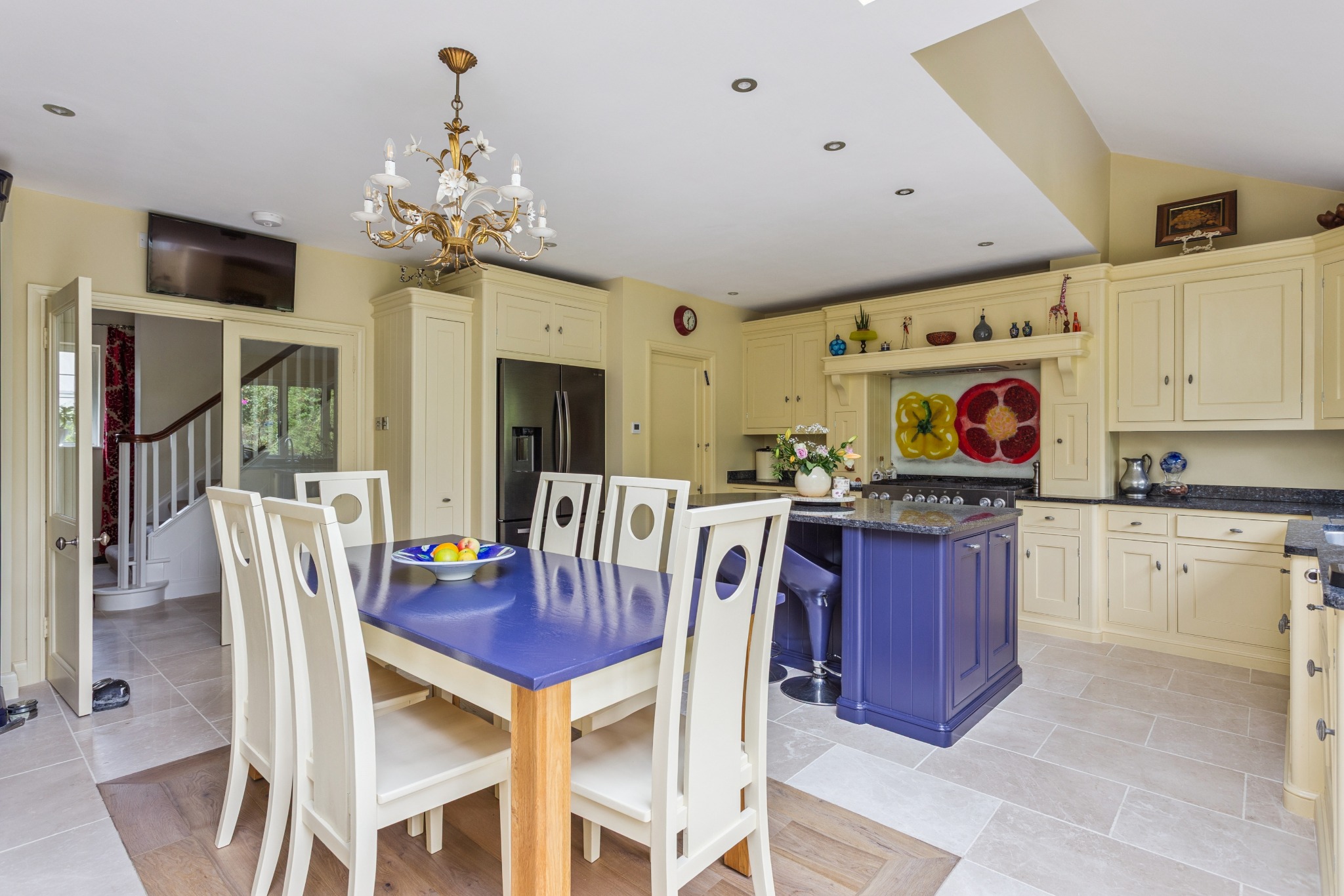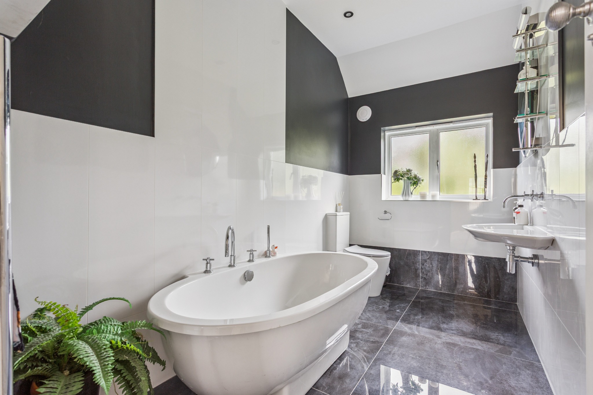 The first floor hosts four good-sized double bedrooms, three of which benefit from en-suite shower rooms, and a luxury family bathroom with a freestanding bath tub. A large double bedroom, currently utilised as a gym, is located on the second floor, along with a study and access to eaves storage.
