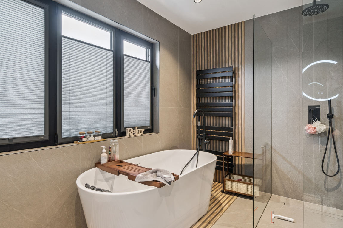 To the first floor there is a principal bedroom with a dressing room, a large en-suite, and access to a private balcony. There are three further double bedrooms with a second en-suite, as well as a Jack'n'Jill shower room. Furthermore, there is a good-sized loft room, and a sizeable outbuilding, also with a shower room & wc, ideal use for a home office or gym.