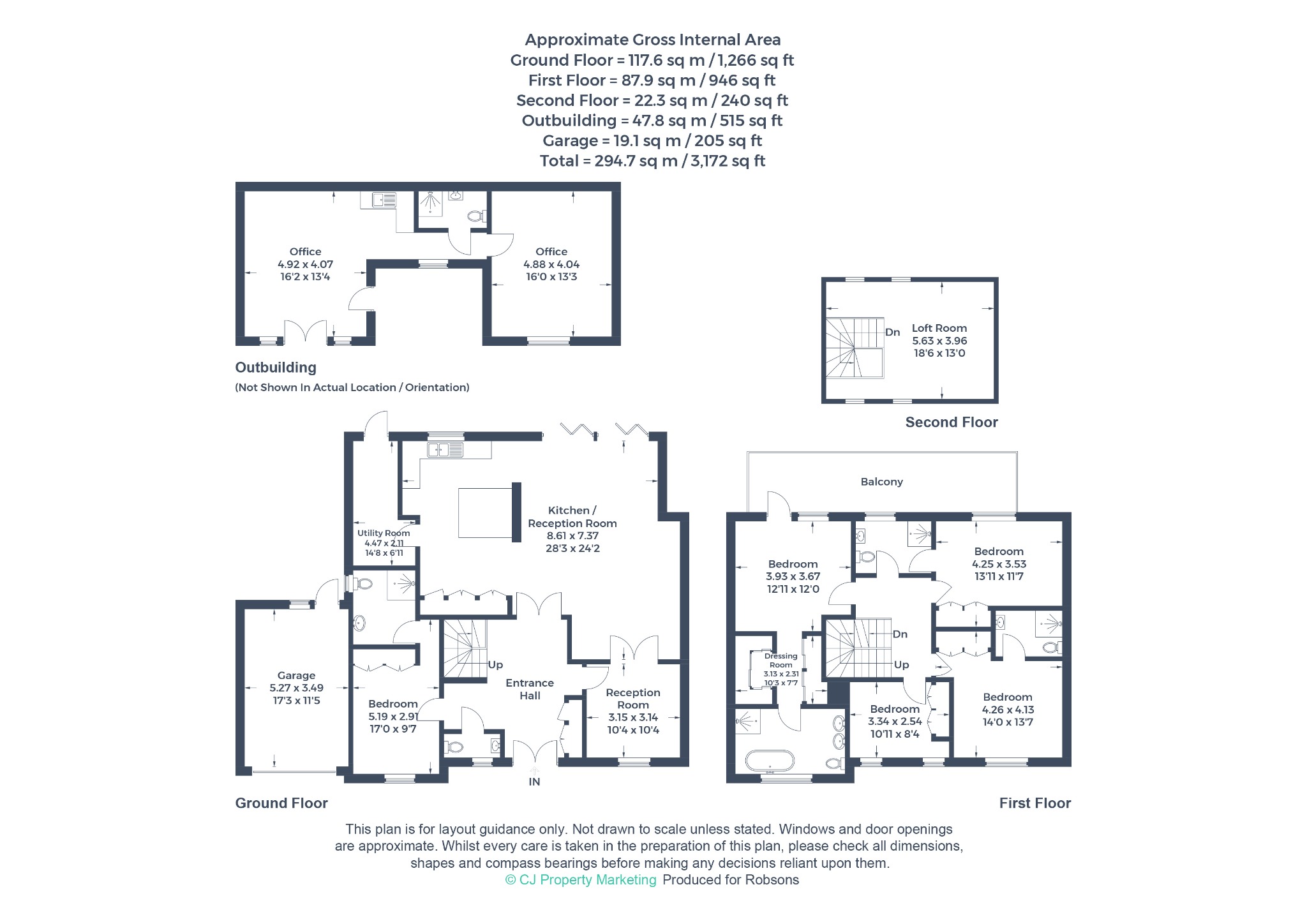 To the first floor there is a principal bedroom with a dressing room, a large en-suite, and access to a private balcony. There are three further double bedrooms with a second en-suite, as well as a Jack'n'Jill shower room. Furthermore, there is a good-sized loft room, and a sizeable outbuilding, also with a shower room & wc, ideal use for a home office or gym.