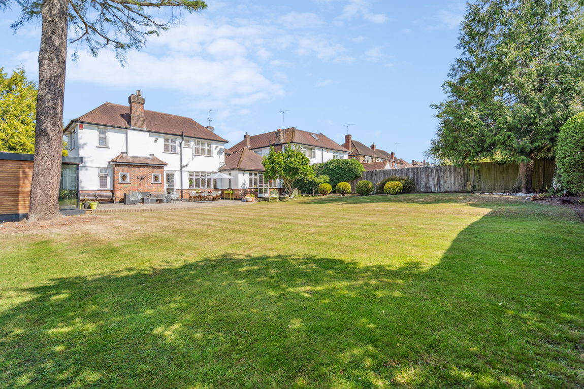 Set on a corner plot of just over a quarter of an acre, the rear garden offers a paved patio seating area overlooking the extensive lawn and a selection of mature trees and shrubs. There is also a detached home office/studio with bi-fold doors, power, lighting and heating.