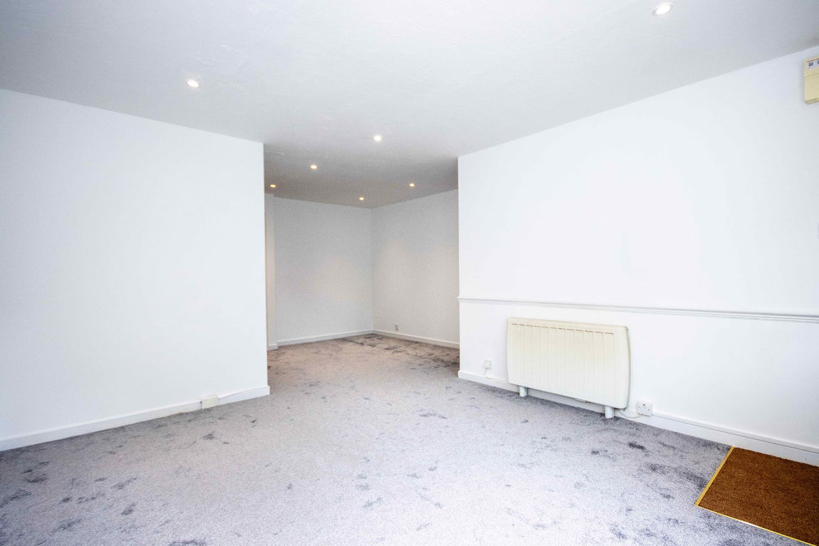 The accommodation comprises a generous 21'4 x 11'8 front-aspect living/dining room, filled with natural light and complete with a large built-in storage cupboard. Off the living room, a hallway leads to a well-appointed kitchen, offering a range of fitted units and space for freestanding appliances.