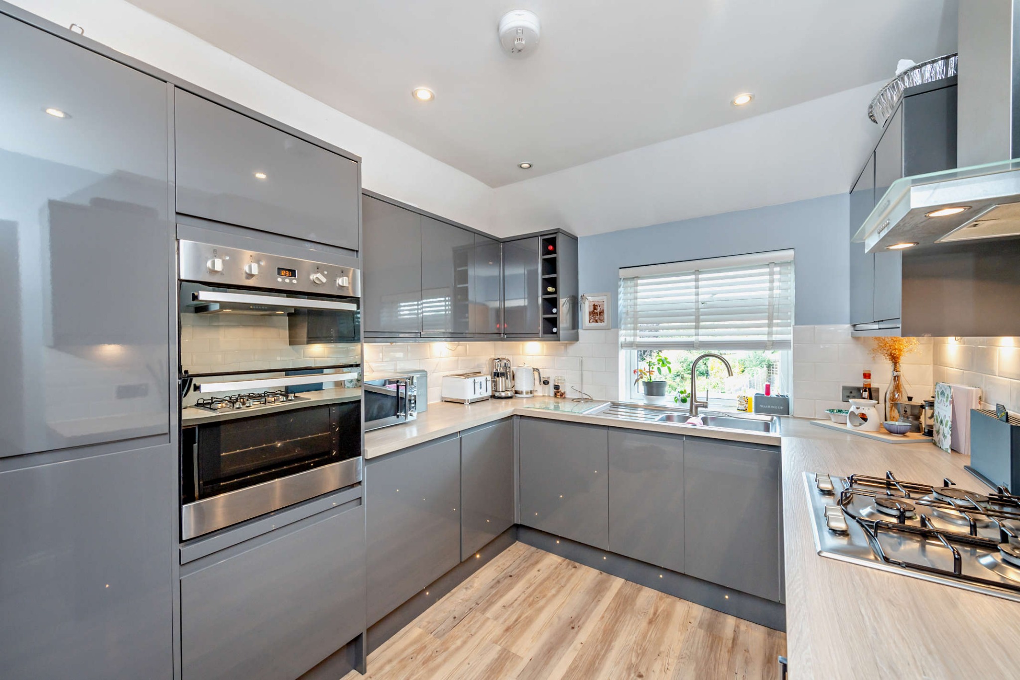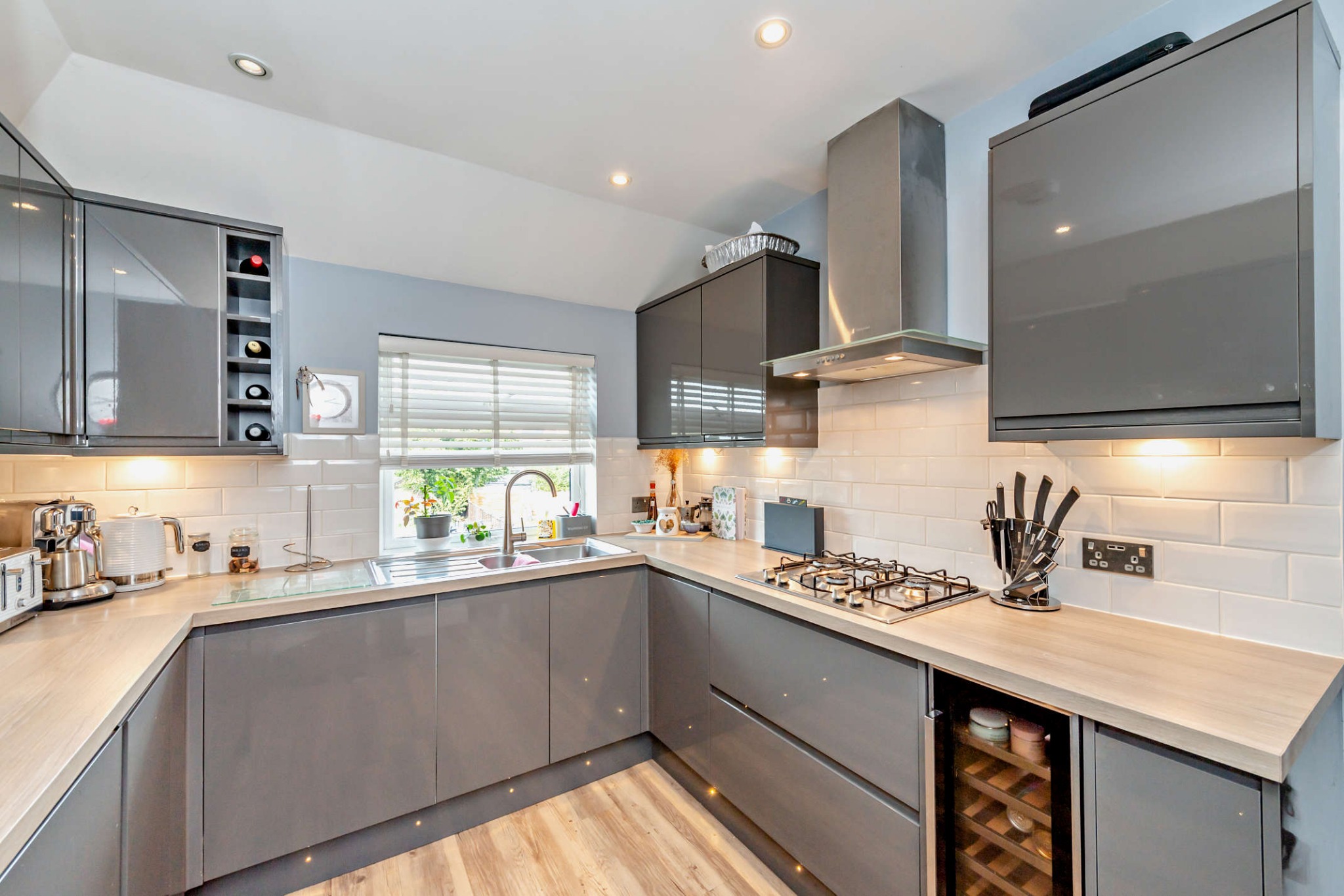 Upon entering the property, there is a welcoming hallway with stairs to the first floor. There is a generous lounge with spotlights and wood flooring. A stylish and contemporary kitchen overlooking the rear garden featuring a variety of units and integrated appliances and a wine cooler.