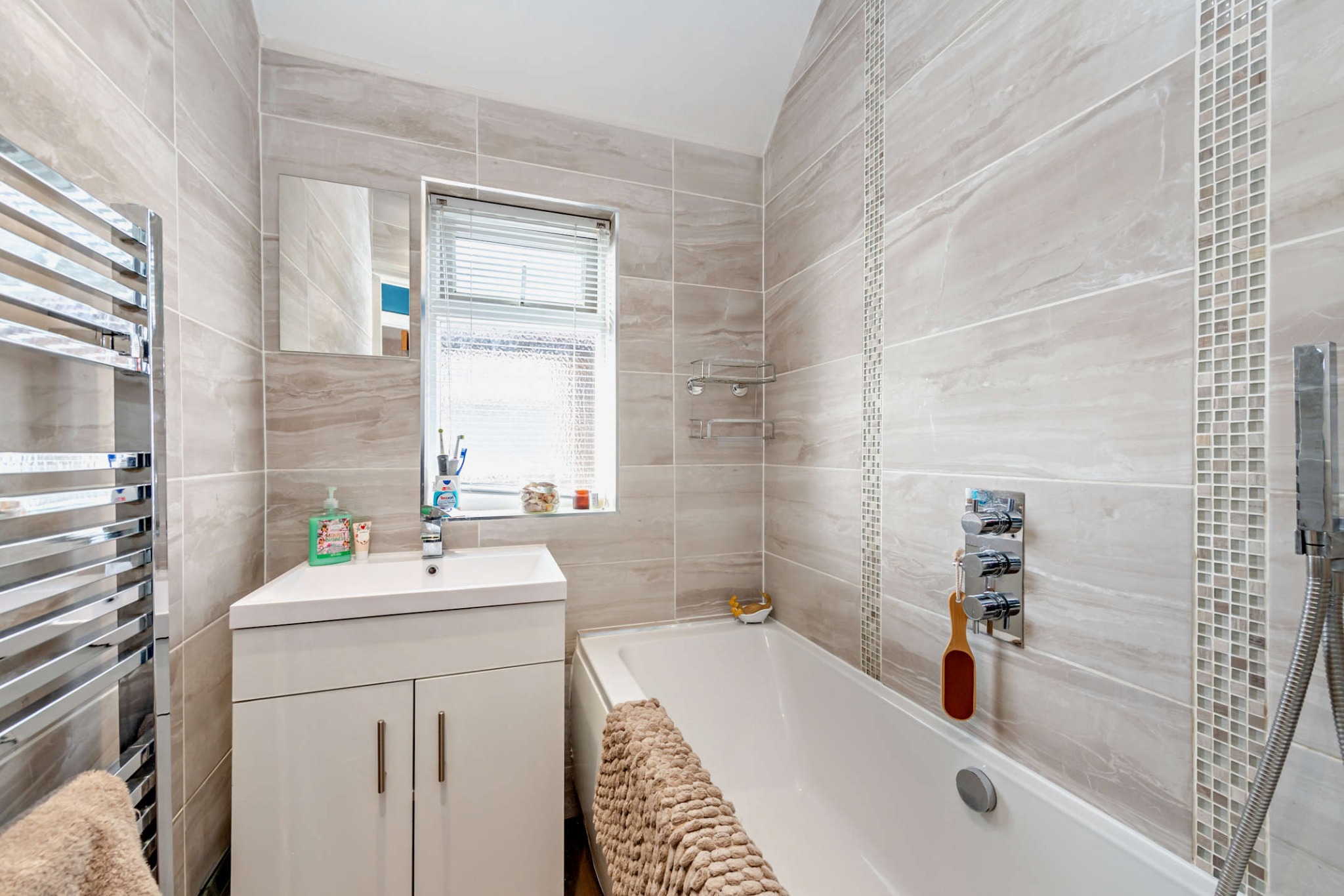 There is an attractive, well-appointed double bedroom, a modern, fully tiled bathroom with under-sink storage and a separate wc.