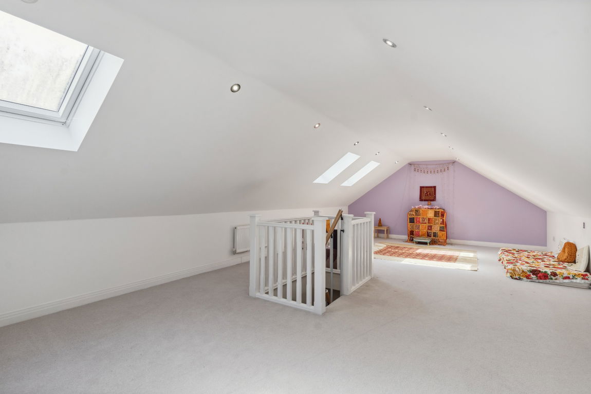 To the first floor there is a principal bedroom with ensuite, four further bedrooms, one with ensuite and a family bathroom. The second floor hosts an office/prayer room with three skylights.