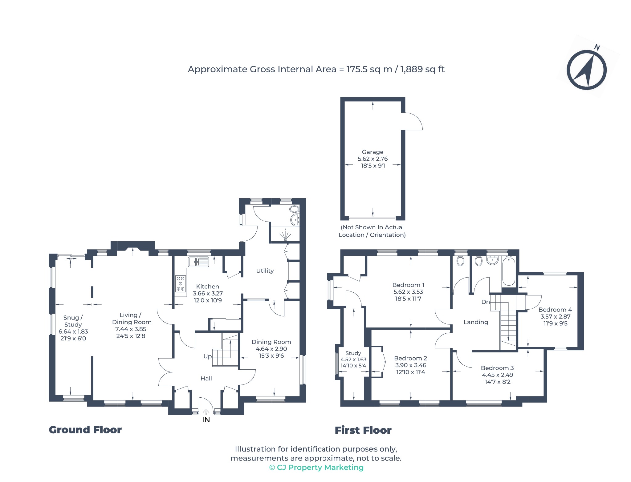 Four double bedrooms are located on the first floor, with one benefiting from a study or storage area, along with a modern family bathroom and an additional, separate WC.