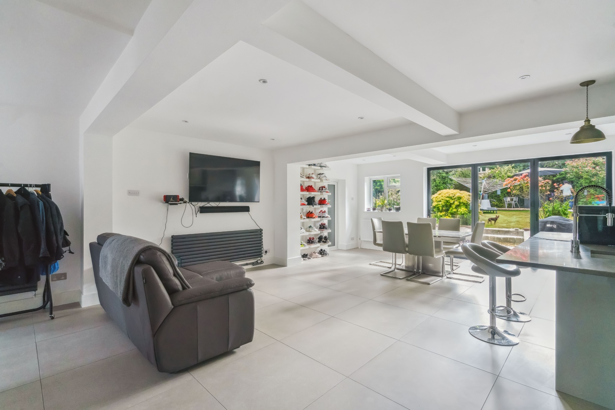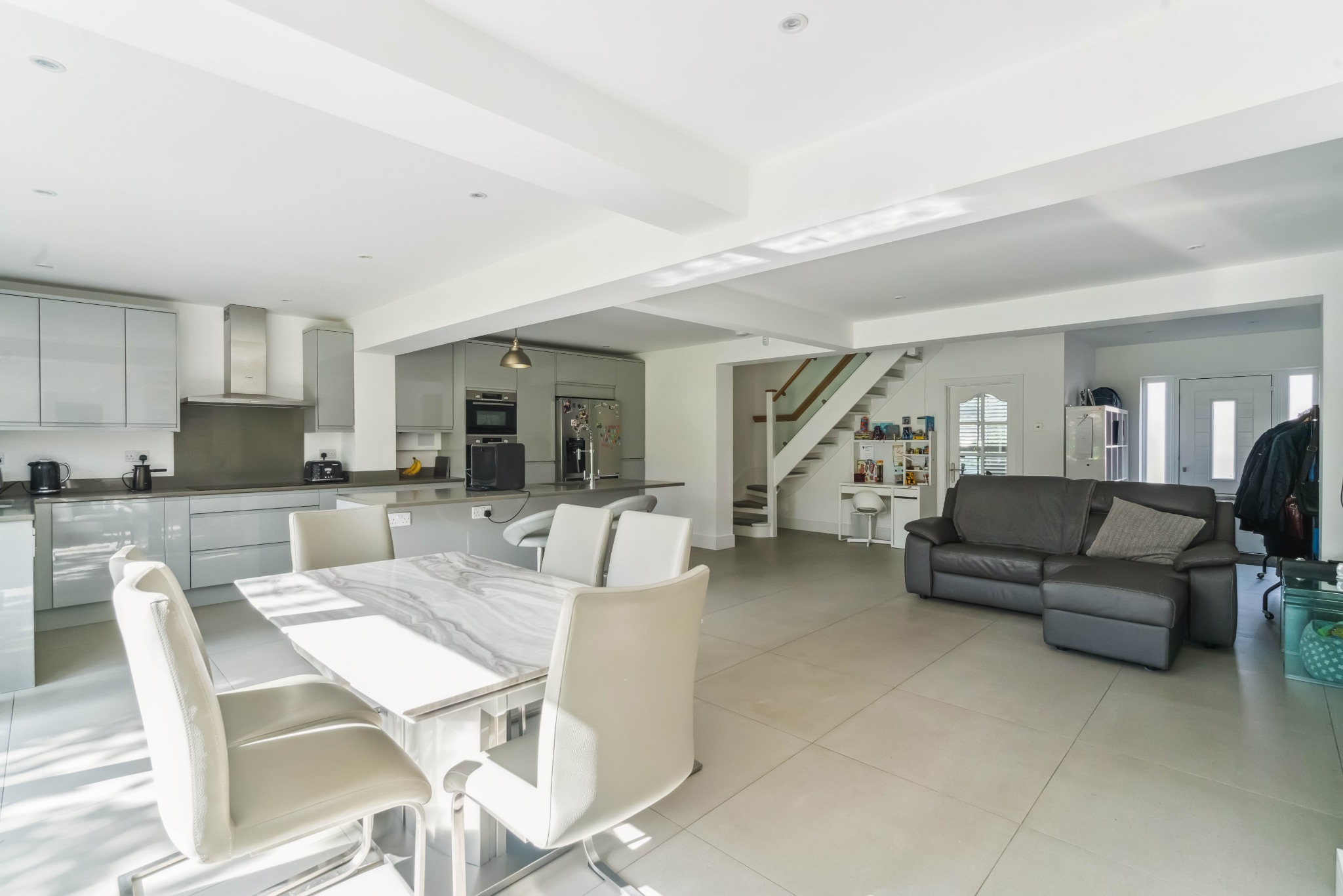 Upon entering the property, you are greeted by a large, contemporary kitchen/dining/living room that provides a great social space for families, with bi-folding doors opening out to the garden and flooding the room with natural light. There is a bespoke kitchen comprising modern units with integrated appliances, a generous living/dining area and a guest cloakroom. Completing the ground floor is a separate lounge.