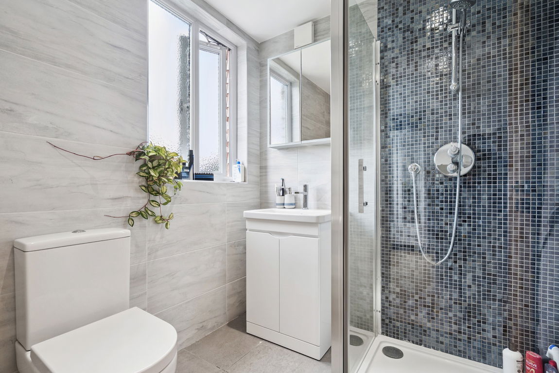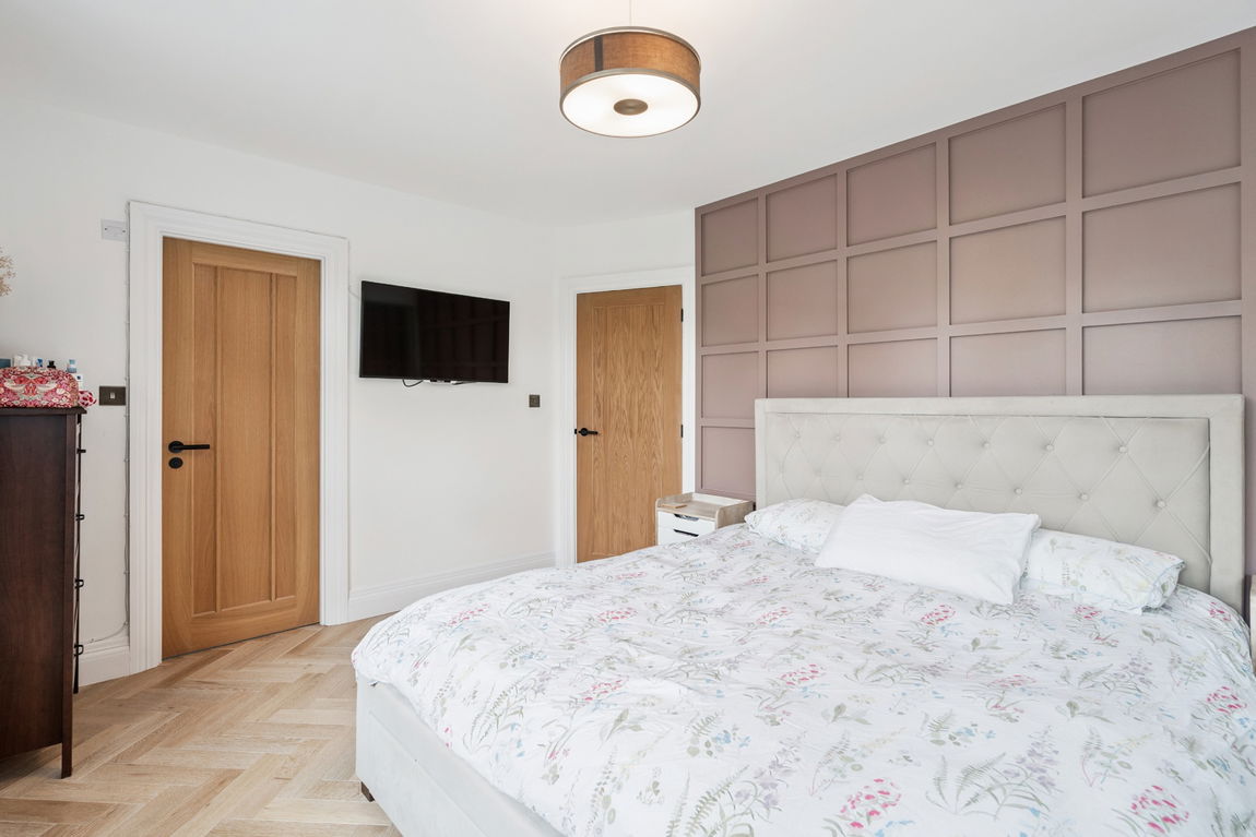 Three good-sized bedrooms are located on the first floor, with one benefiting from fitted wardrobes and an en-suite, and a modern family bathroom. The second floor hosts the principal bedroom, complete with a second en-suite shower room, and access to eaves storage.