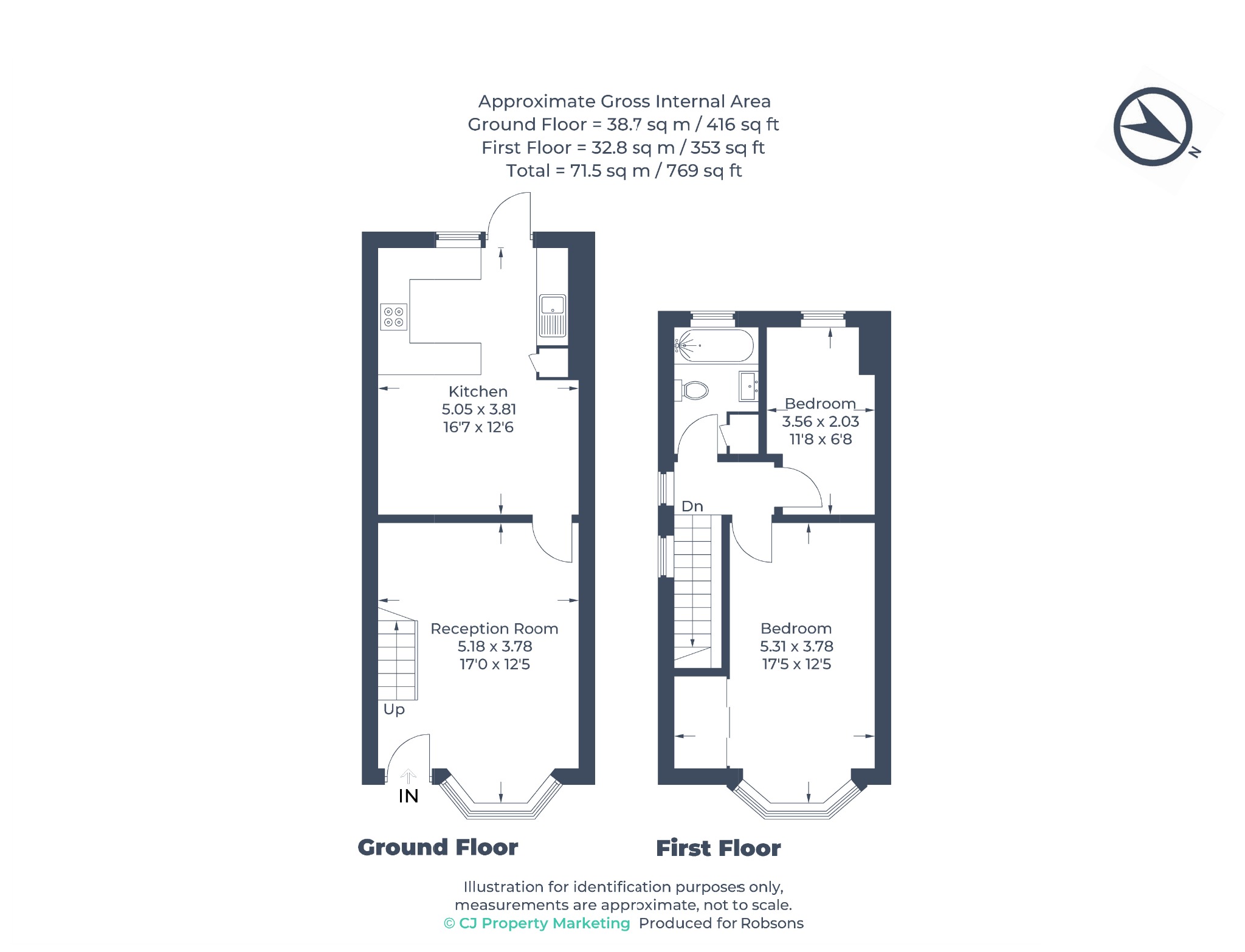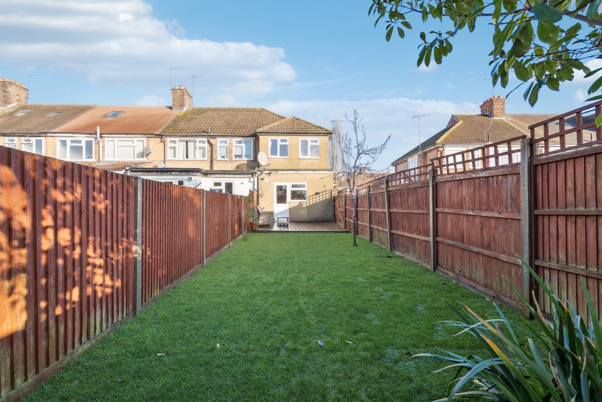 The property comprises a front aspect reception room, a generous kitchen / diner, two bedrooms with one benefiting from fitted wardrobes, and a family bathroom. There is a good-sized rear garden that is laid to lawn with a decking area, and a driveway at the front of the property providing off-street parking.